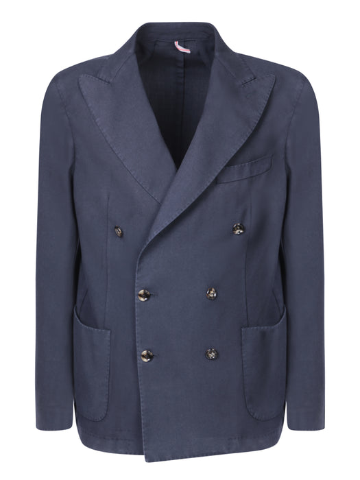 Blue silk double-breasted jacket