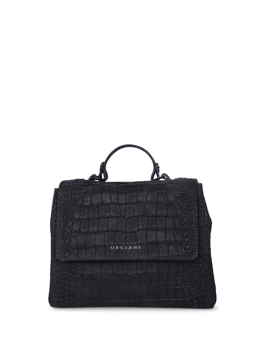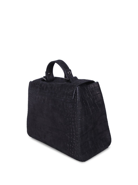 Sveva S Croco Nubuck Black Bag