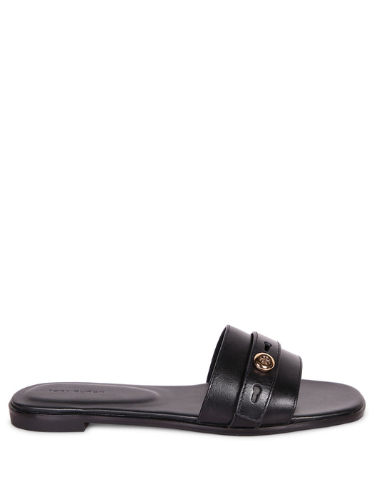 Romy Slide Leather Sandals Black