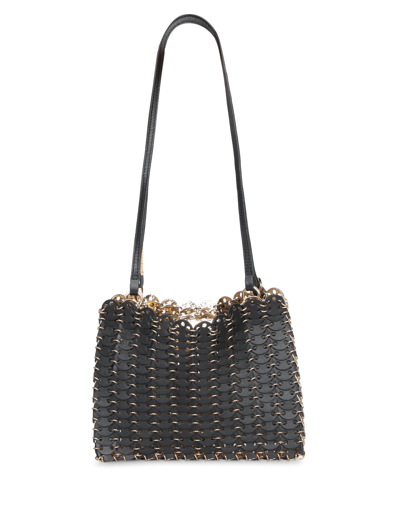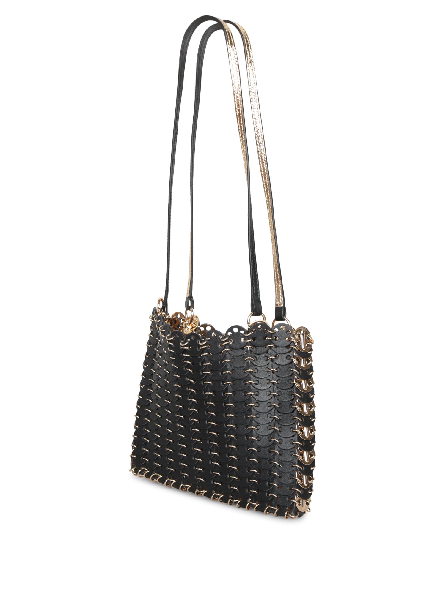 This iconic Paco Rabanne bag blends bold design with practicality. Crafted with intertwined metallic elements in black and gold, it provides a touch of luxury while remaining versatile for everyday use.