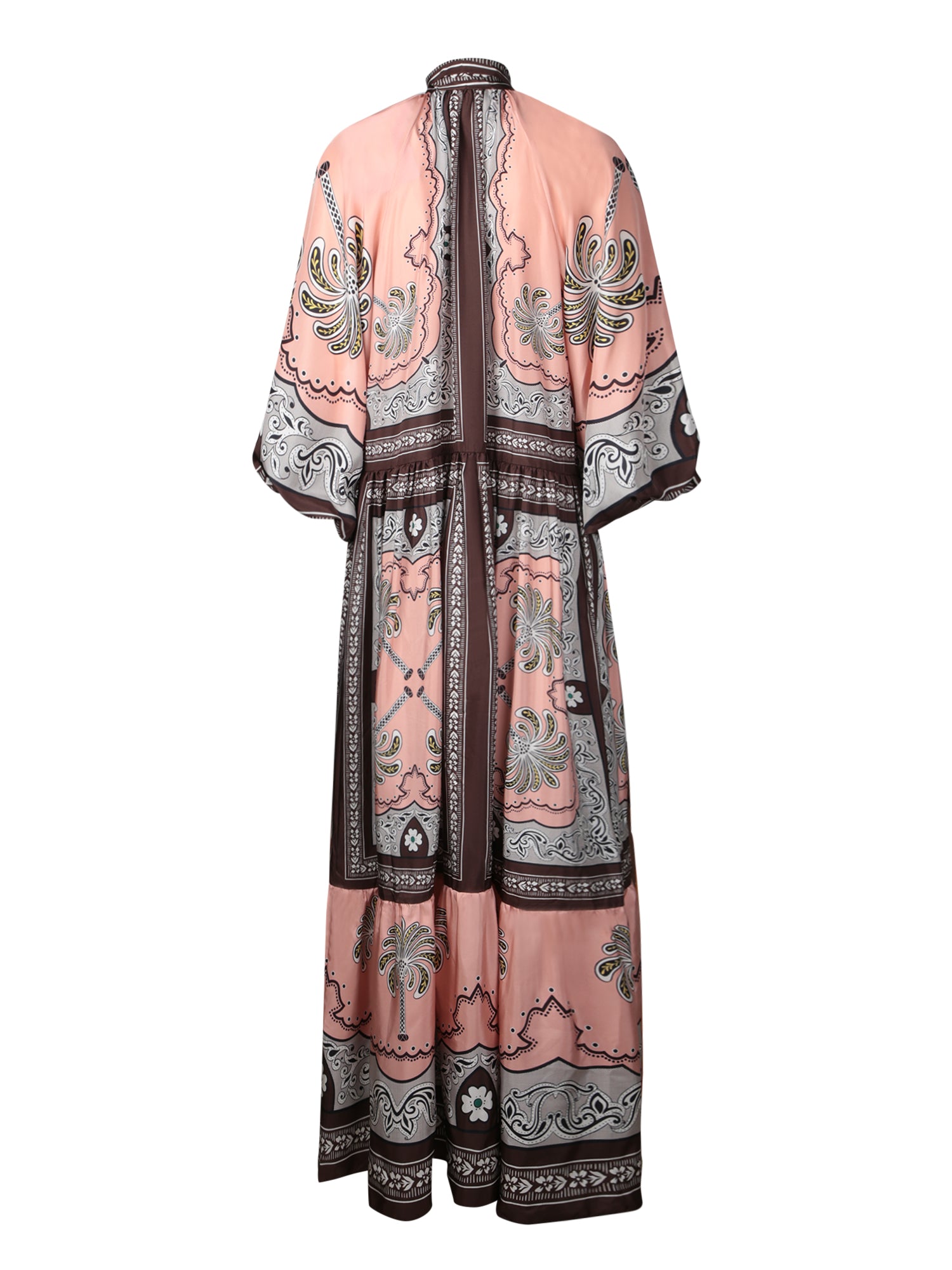 This elegant dress from LA DOUBLE J features a captivating design with a vivid paisley print. The neck bow detail adds a touch of sophistication, while the wide bell sleeves ensure an aura of grace and comfort.