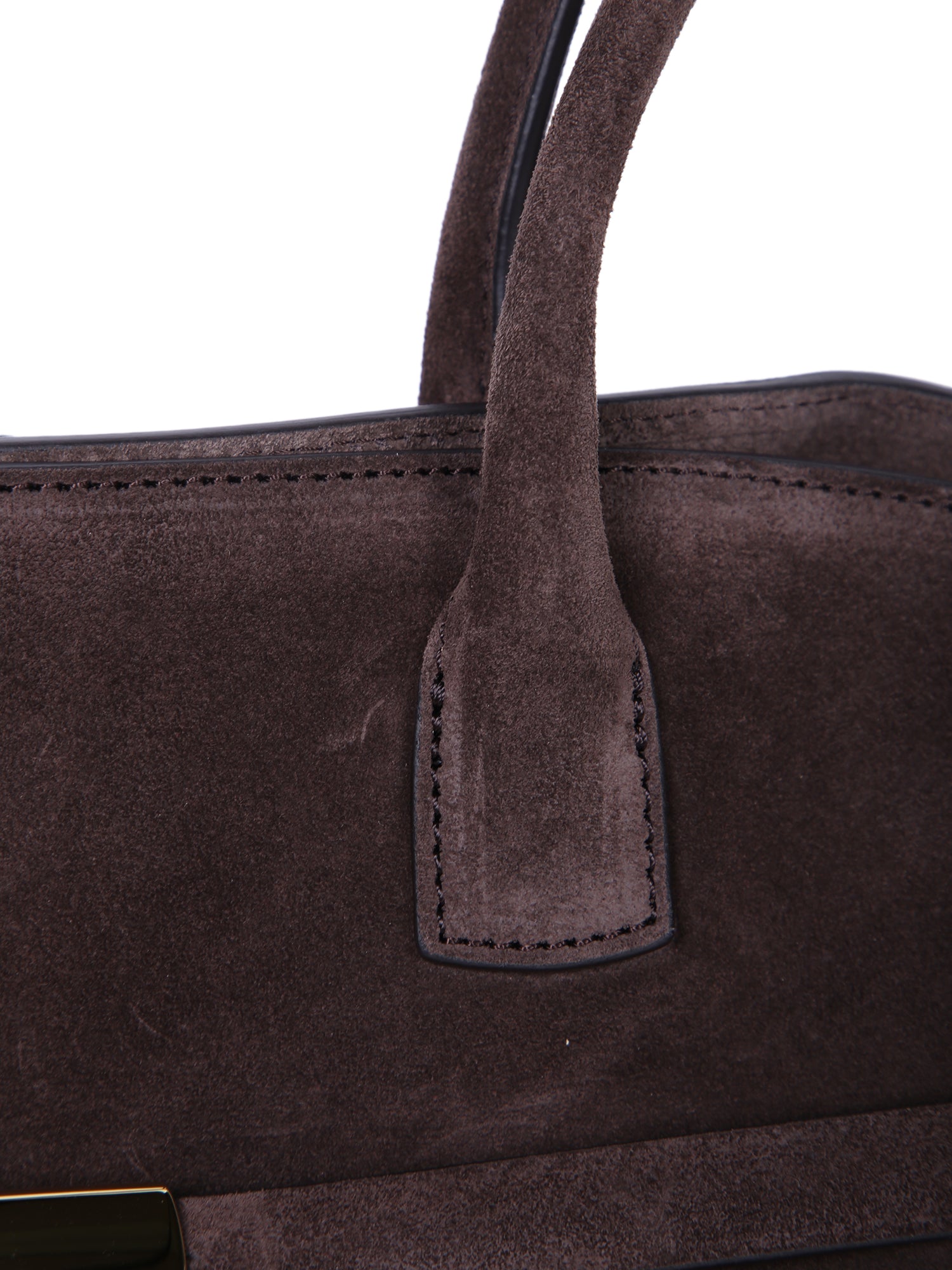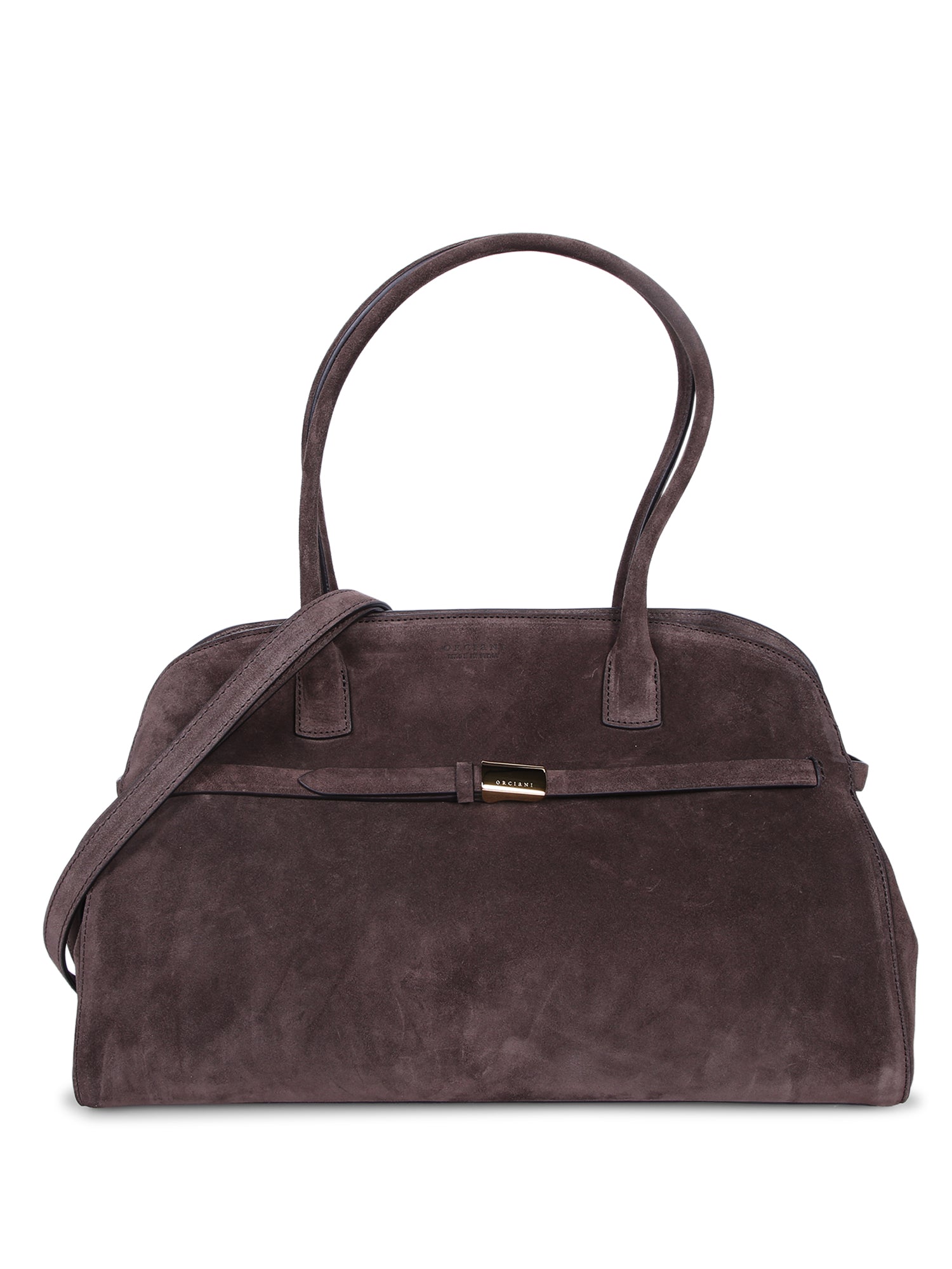 Crafted from soft suede. Classic design with adjustable and removable shoulder strap. Strap closure.