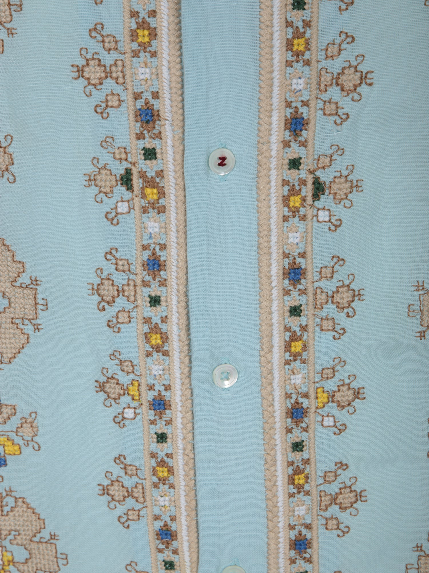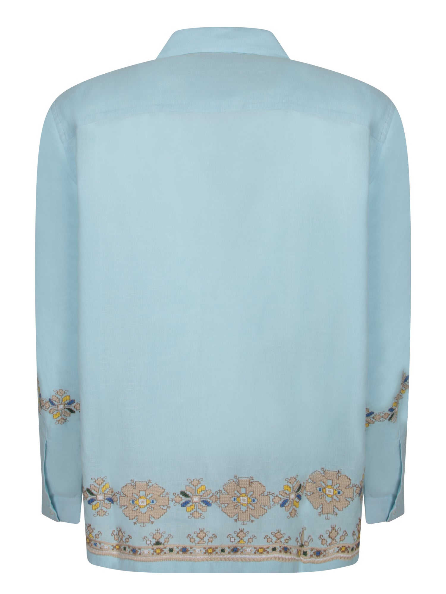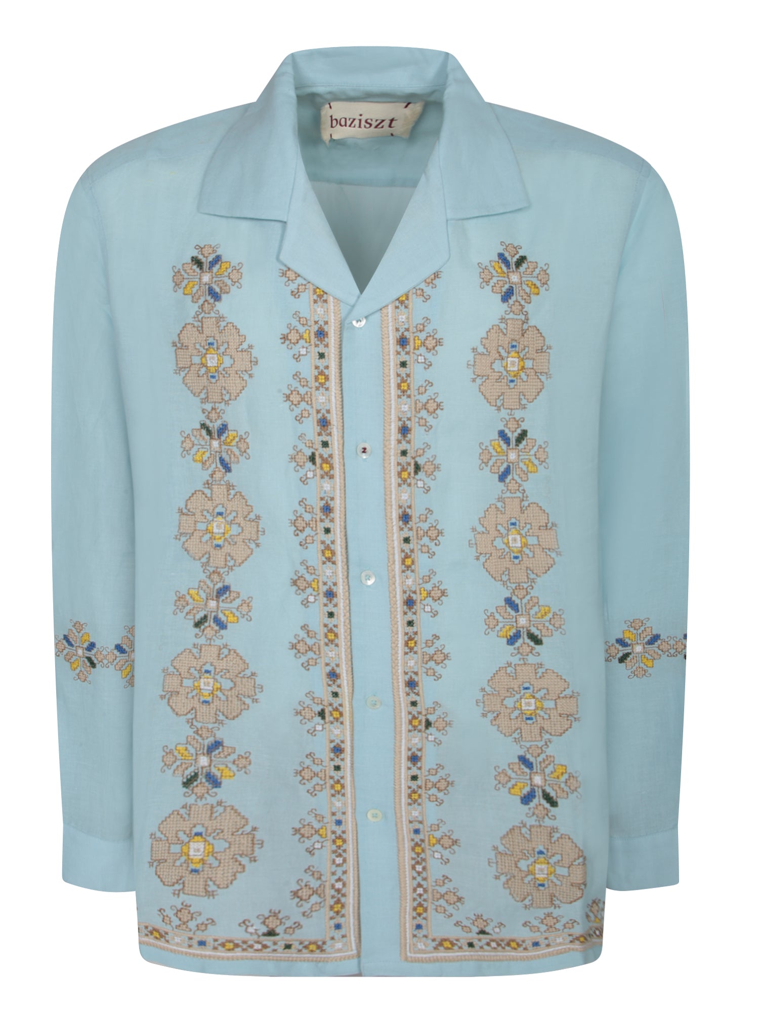 Long-sleeved shirt in lightweight fabric with floral embroidery. Features a classic collar and front button closure.