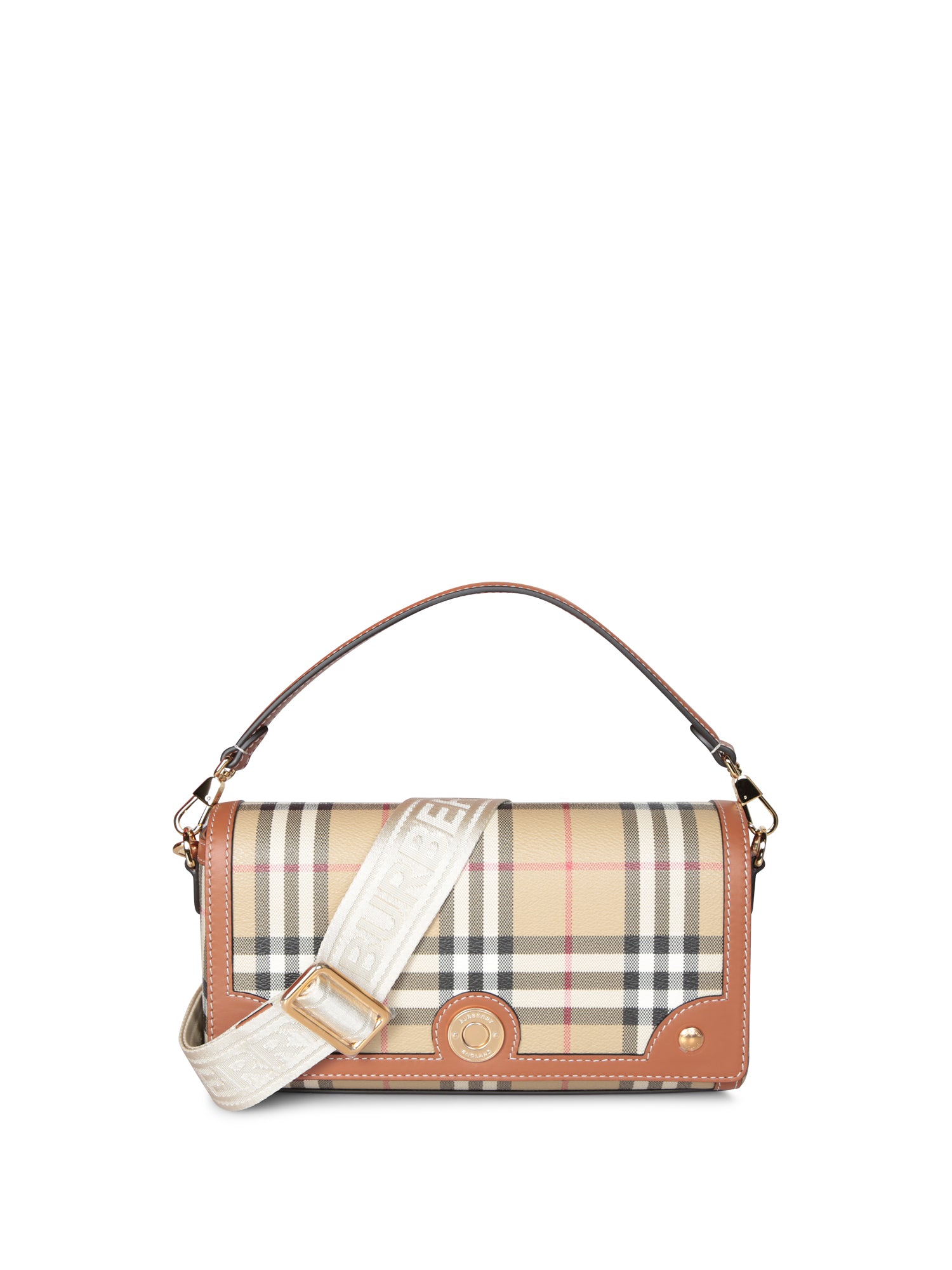 This stylish Burberry bag features a refined blend of check canvas and leather detailing. The broad, adjustable strap provides versatility and comfort, while its distinctive design perfectly complements both casual and more formal looks.