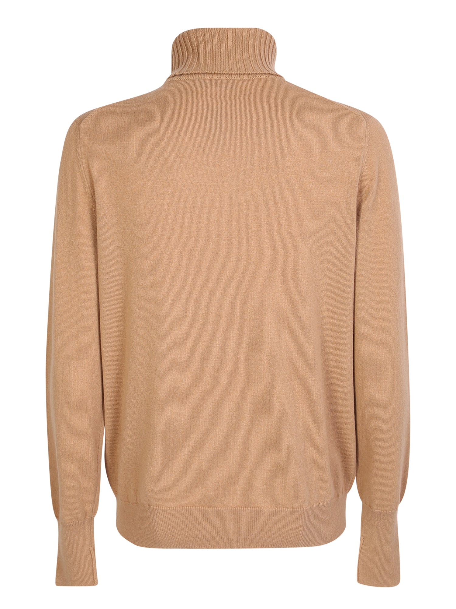 High neck. Long sleeves. Ribbed trim. Color: dark beige