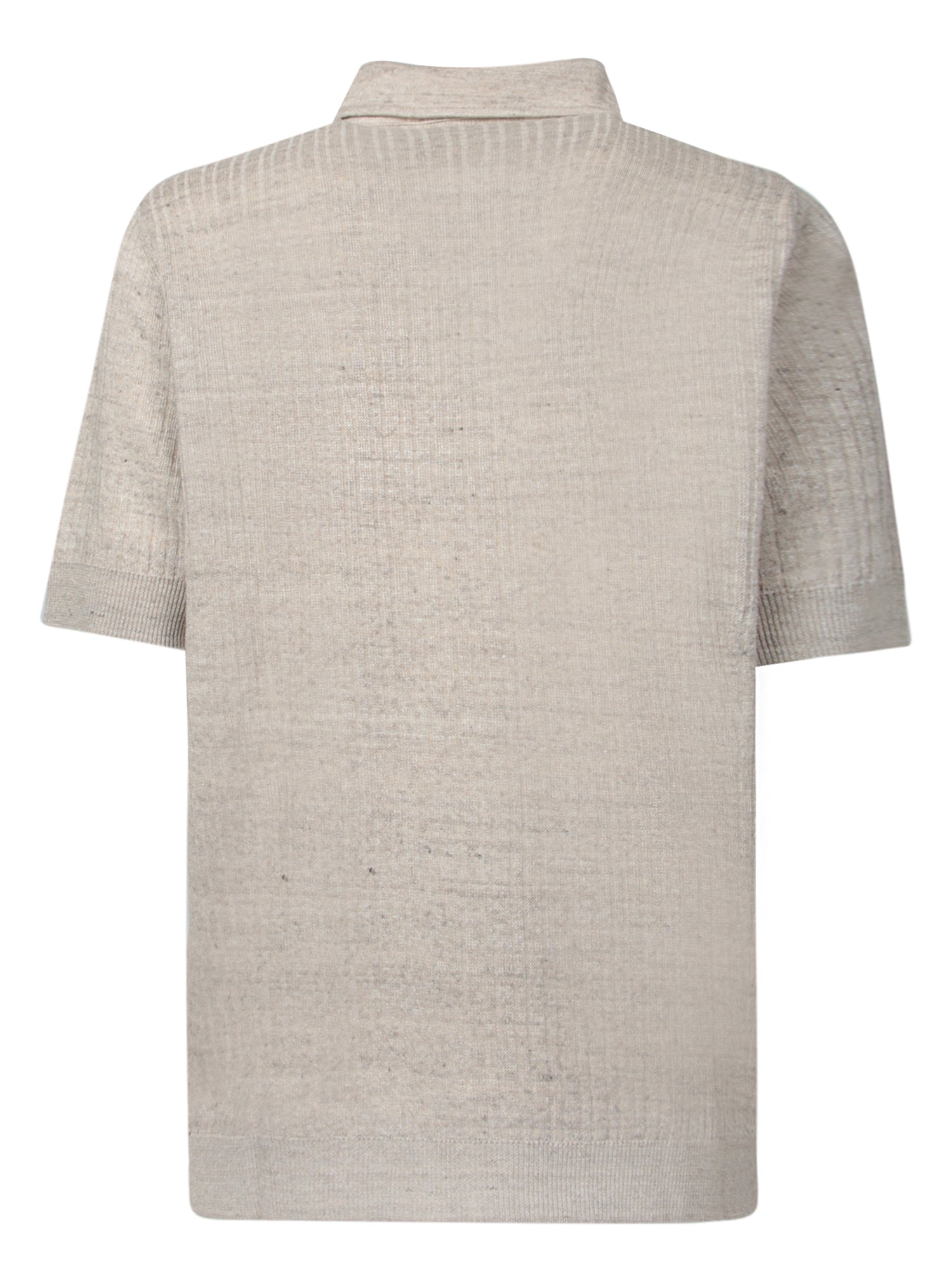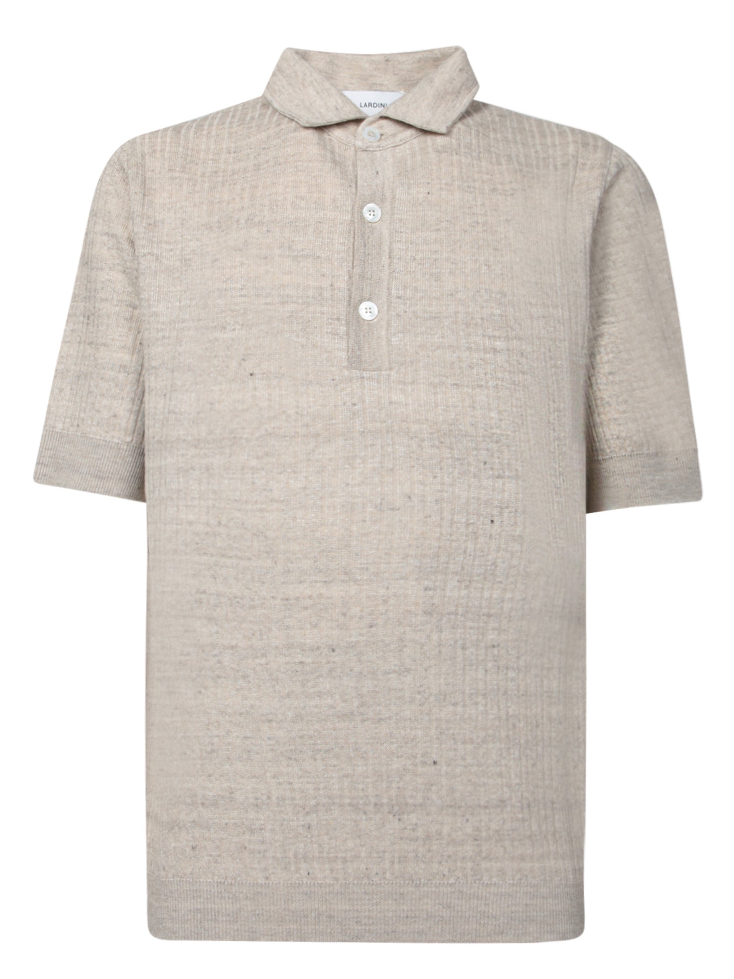 This elegant LARDINI beige linen and cotton polo is perfect for a sophisticated yet casual look. The minimalistic design with a classic collar and button closure reflects a clean and modern aesthetic.
