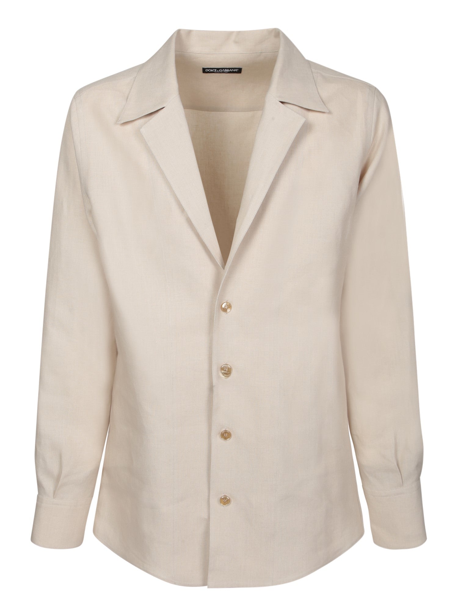 This stylish Dolce & Gabbana beige linen shirt provides a sophisticated look with its minimal design and meticulous details, perfect for a formal event or a polished office outfit.