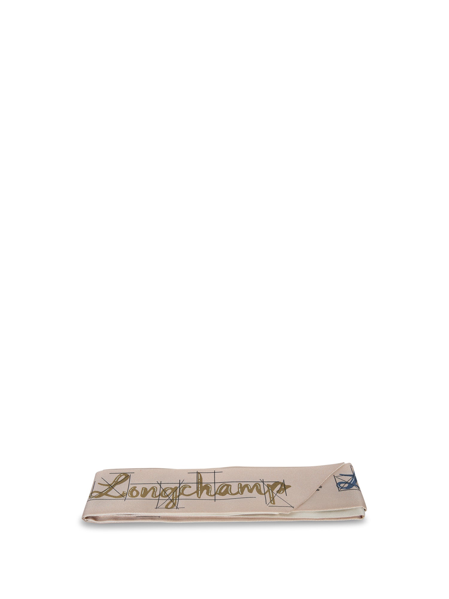 Sophisticated Longchamp beige silk scarf, highlighted by the delicate contrasting logo motif for an elegant and versatile accessory.