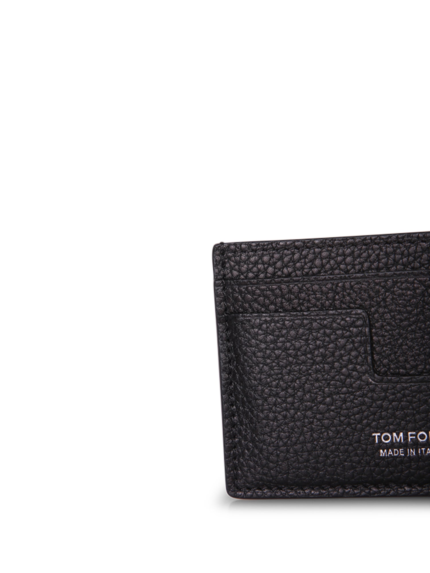 Fine grain leather. Compact design with four pockets. TOM FORD logo at the bottom.