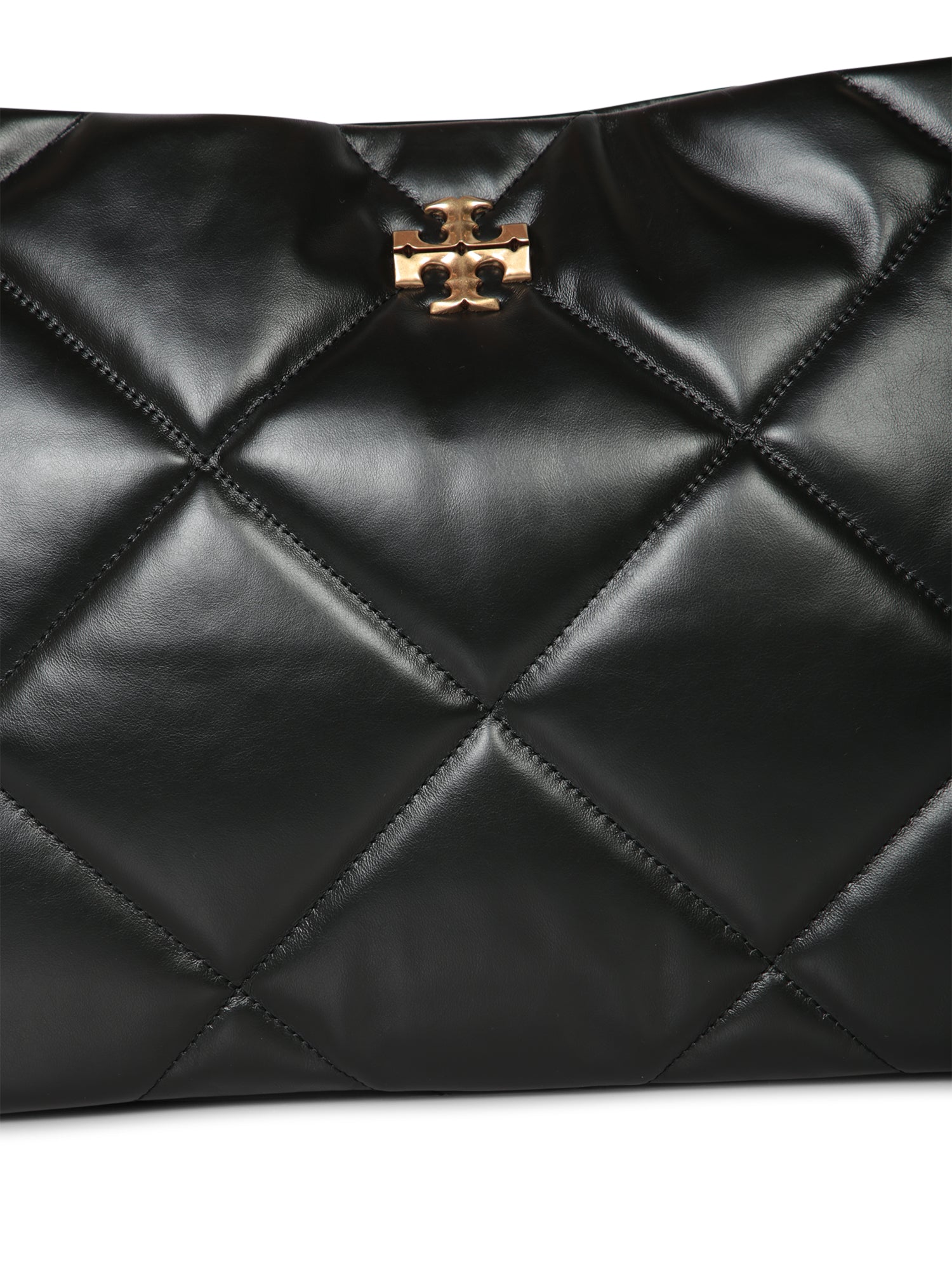 This elegant Tory Burch Kira Diamond Hobo bag is crafted from high-quality soft quilted leather with diamond stitching and gold details. Its spacious interior makes it perfect for any occasion, from the office to an evening out.