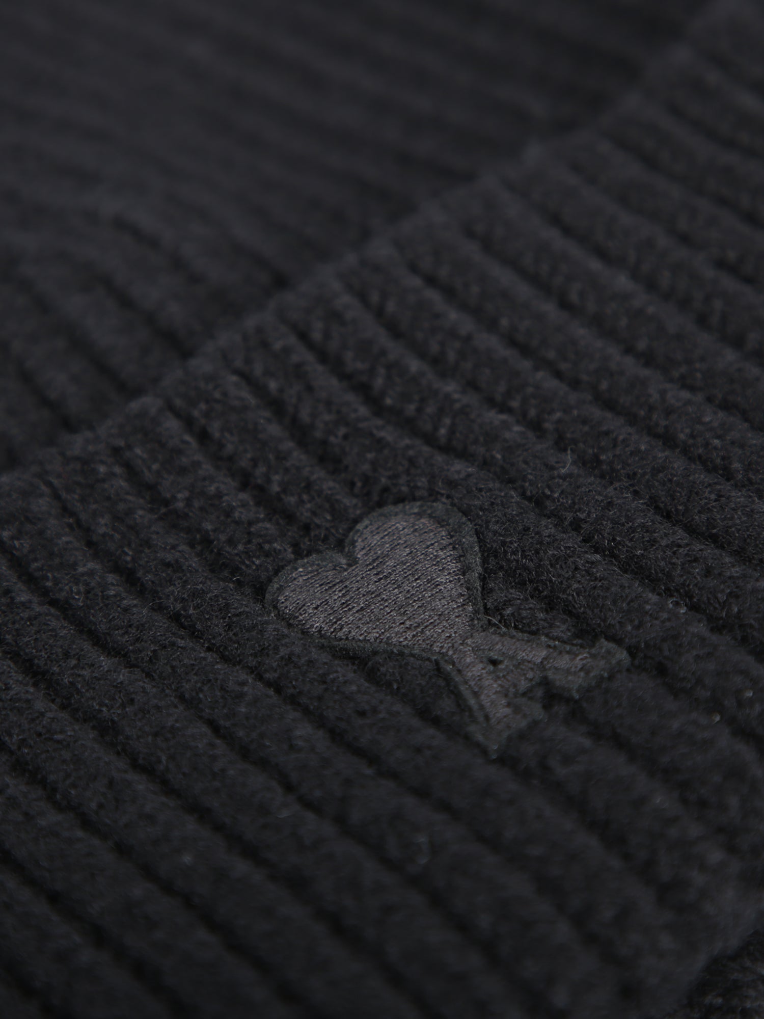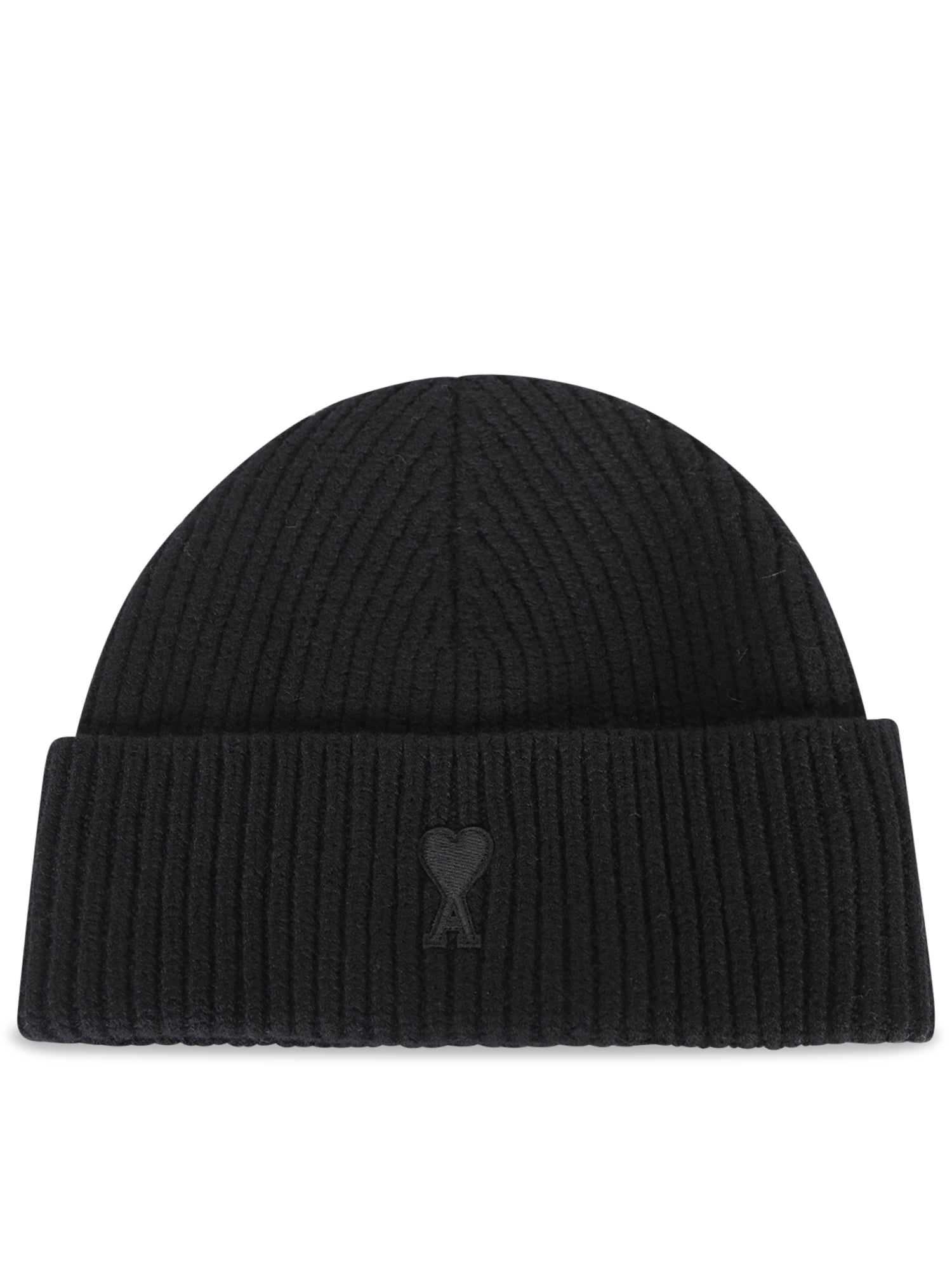 Ribbed knit beanie. Embroidered AMI de Coeur logo on the fold. Simple and elegant design.