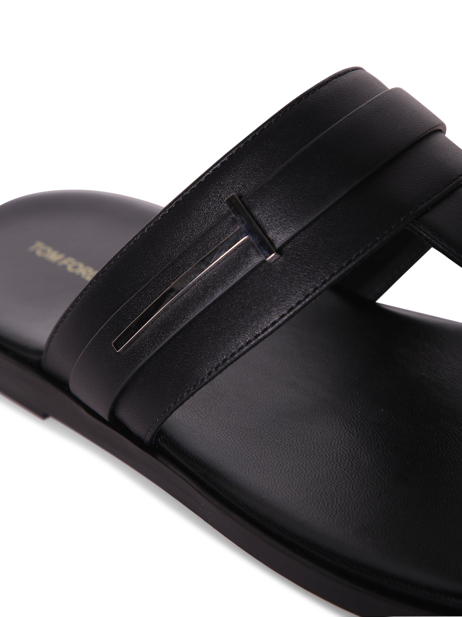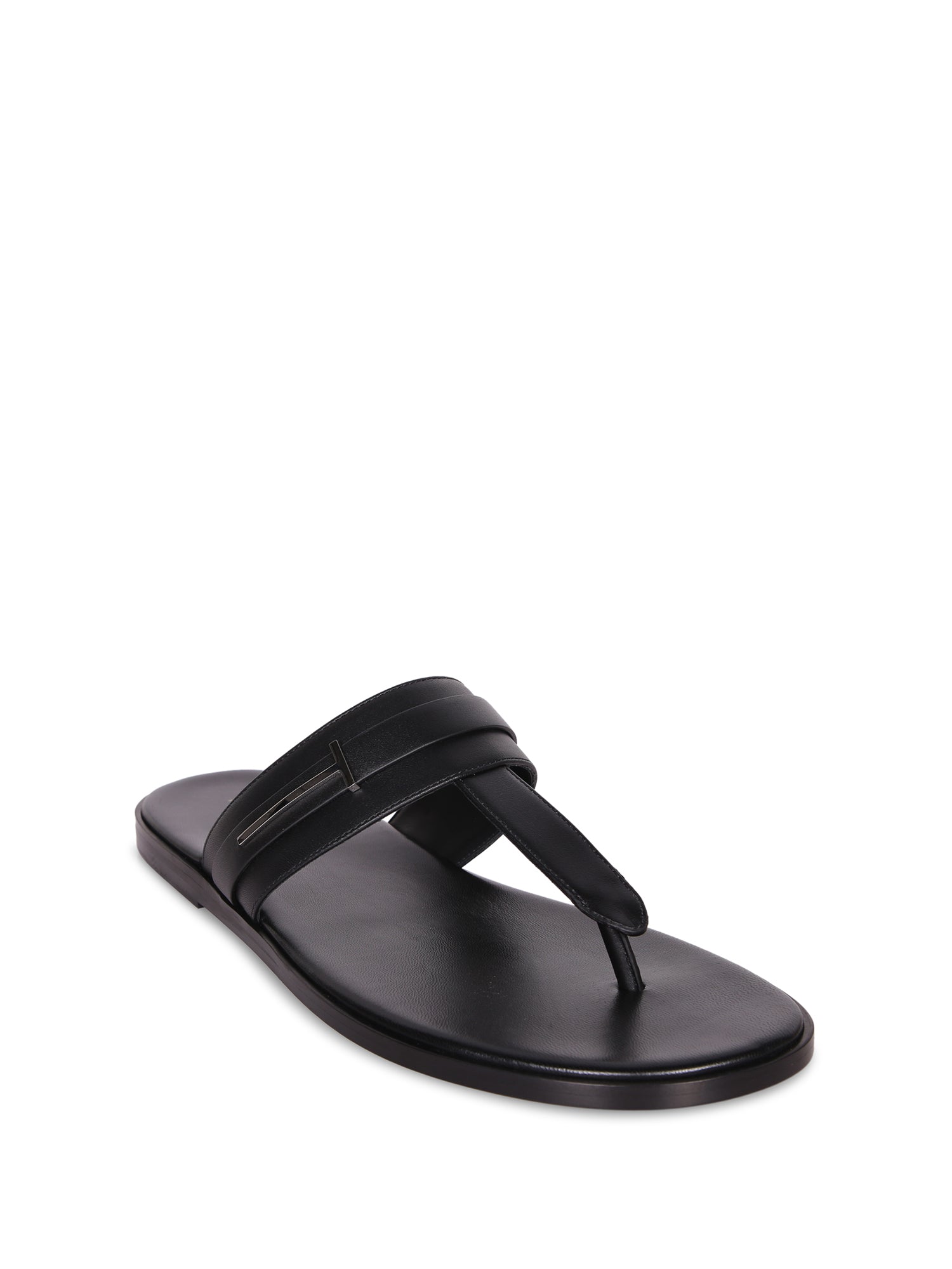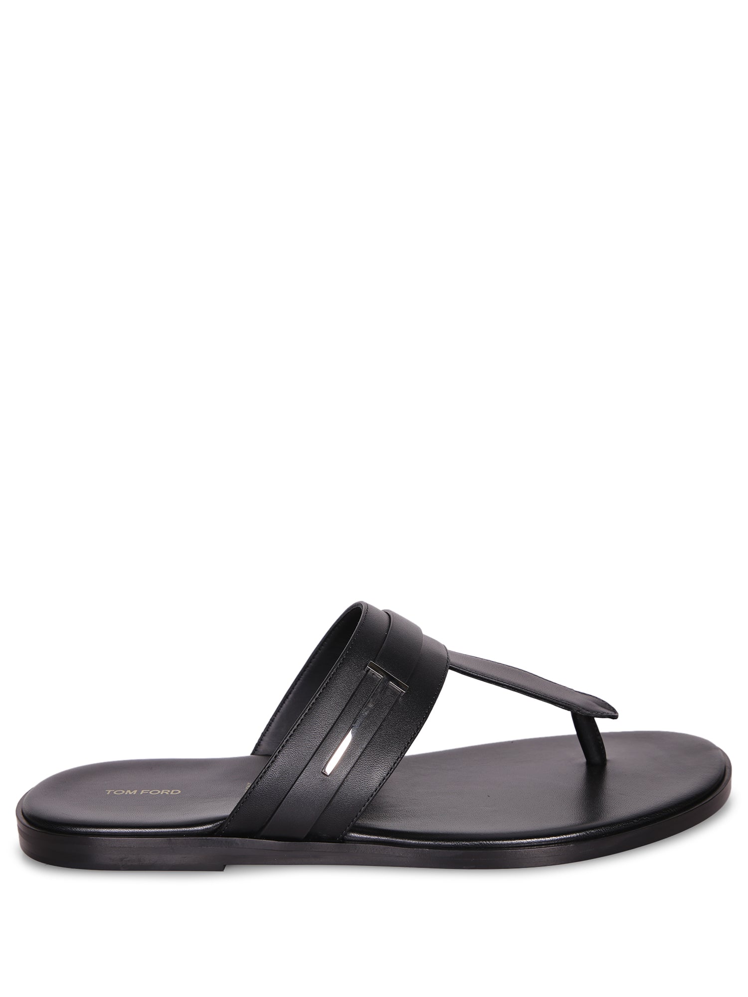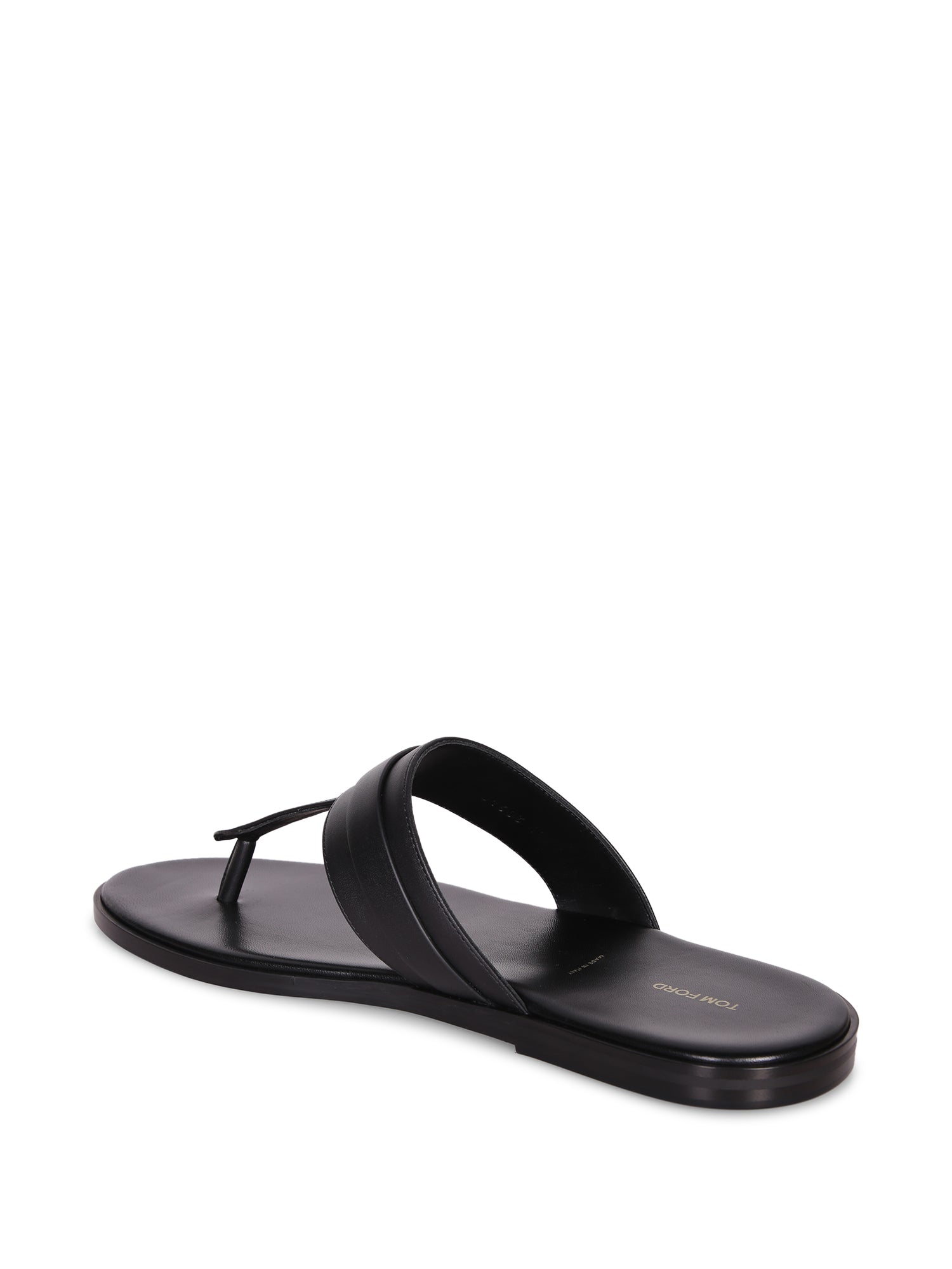 Black leather thong sandal. Tom Ford logo engraved on the heel. Flat sole for optimal comfort.