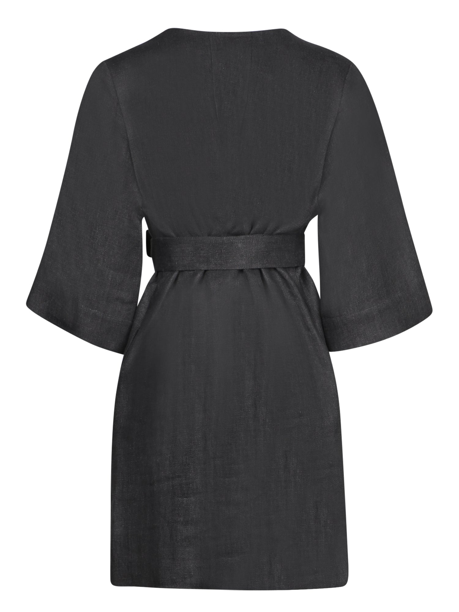 Black Linen Belted Dress
