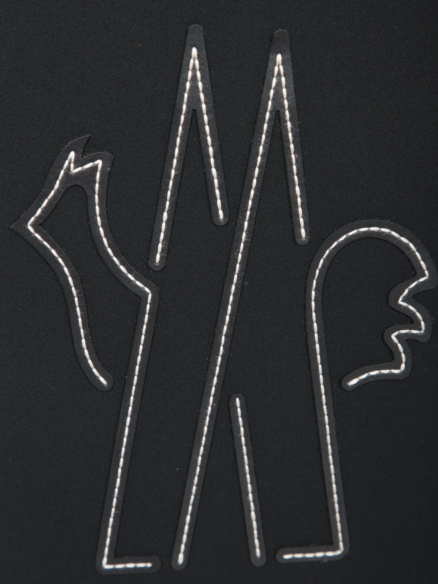 Black technical fabric backpack with embossed Moncler logo. Features adjustable shoulder straps and drawstring closure.