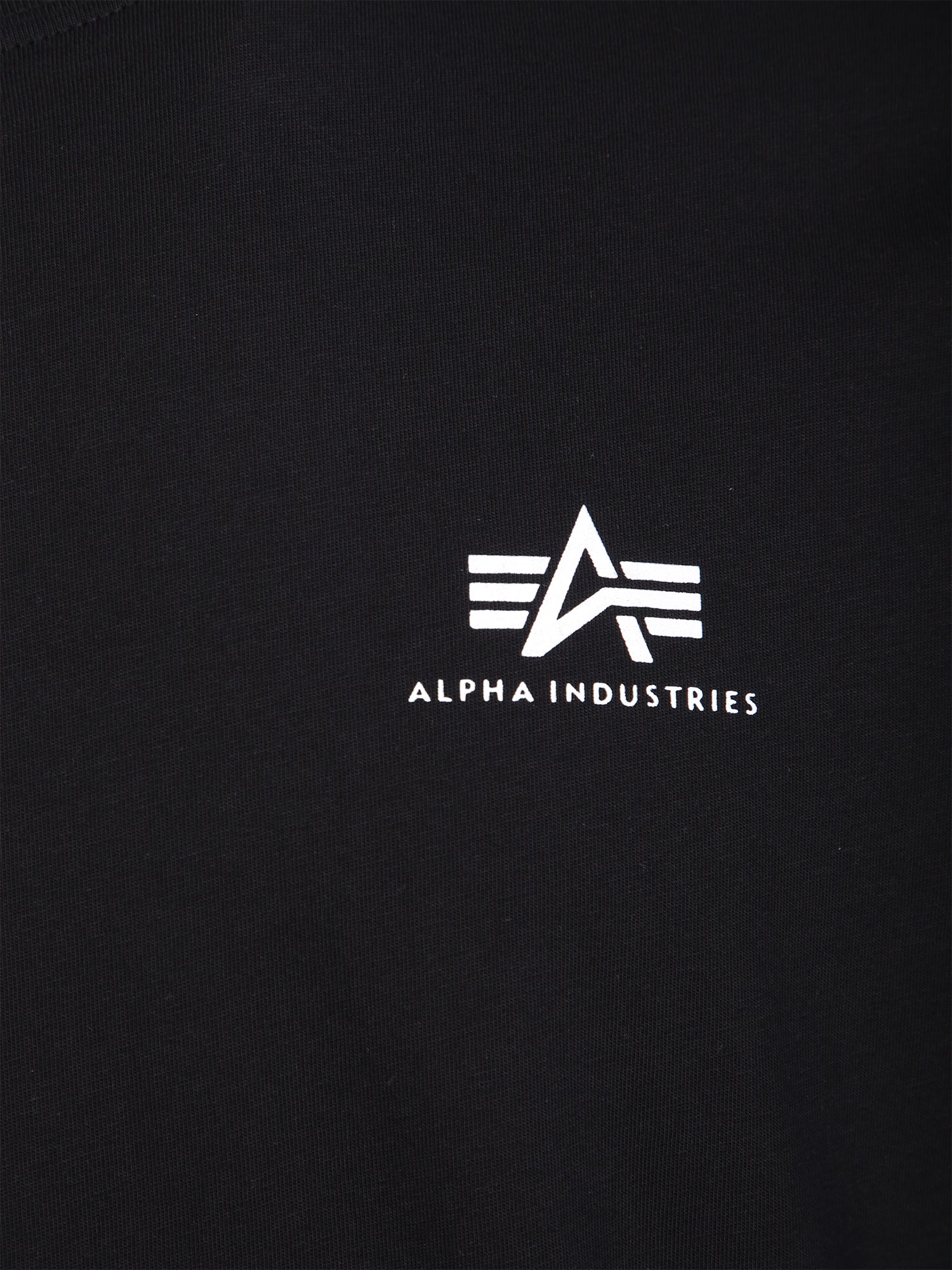 Black logo t-shirt by Alpha Industries; the garment boasts a casual and minimalist design, enhanced by the iconic logo