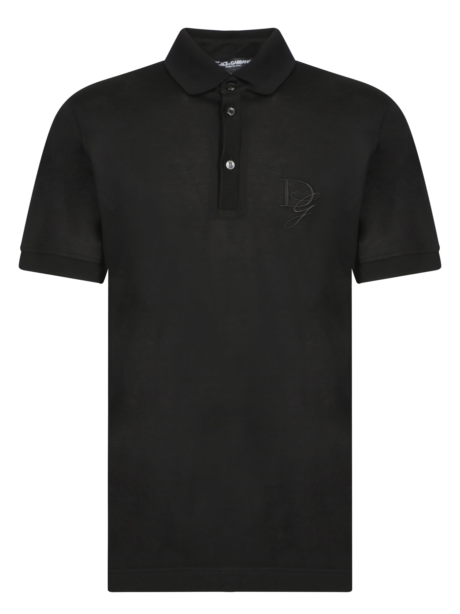 This elegant black polo by Dolce & Gabbana features a clean design with refined details, such as the tone-on-tone embroidered minimalist DG logo adding a touch of subtle sophistication.