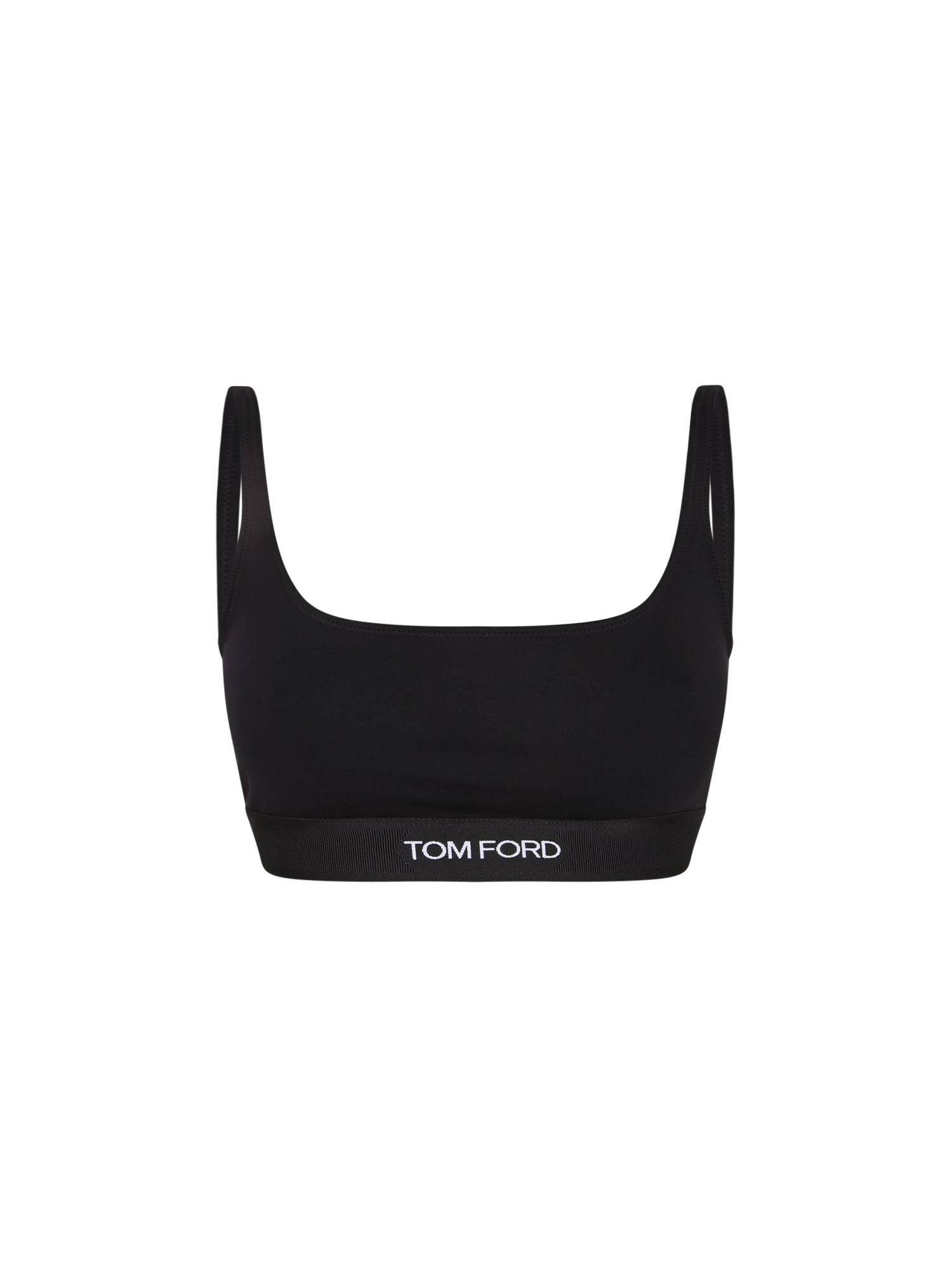 Black modal bralette top. Thin strap sleeves. Visible TOM FORD logo label.
