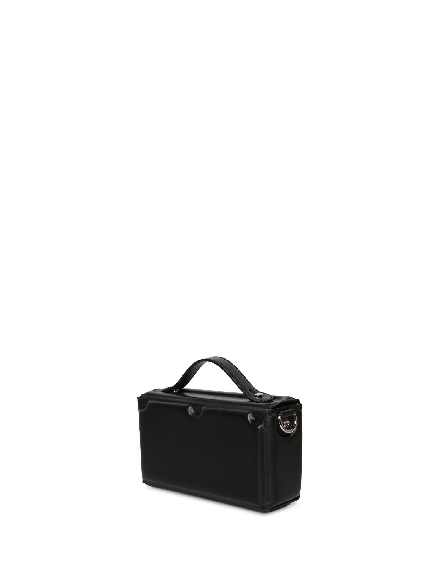 Soft nappa leather bag. Adjustable and removable strap. Front metal hook closure.