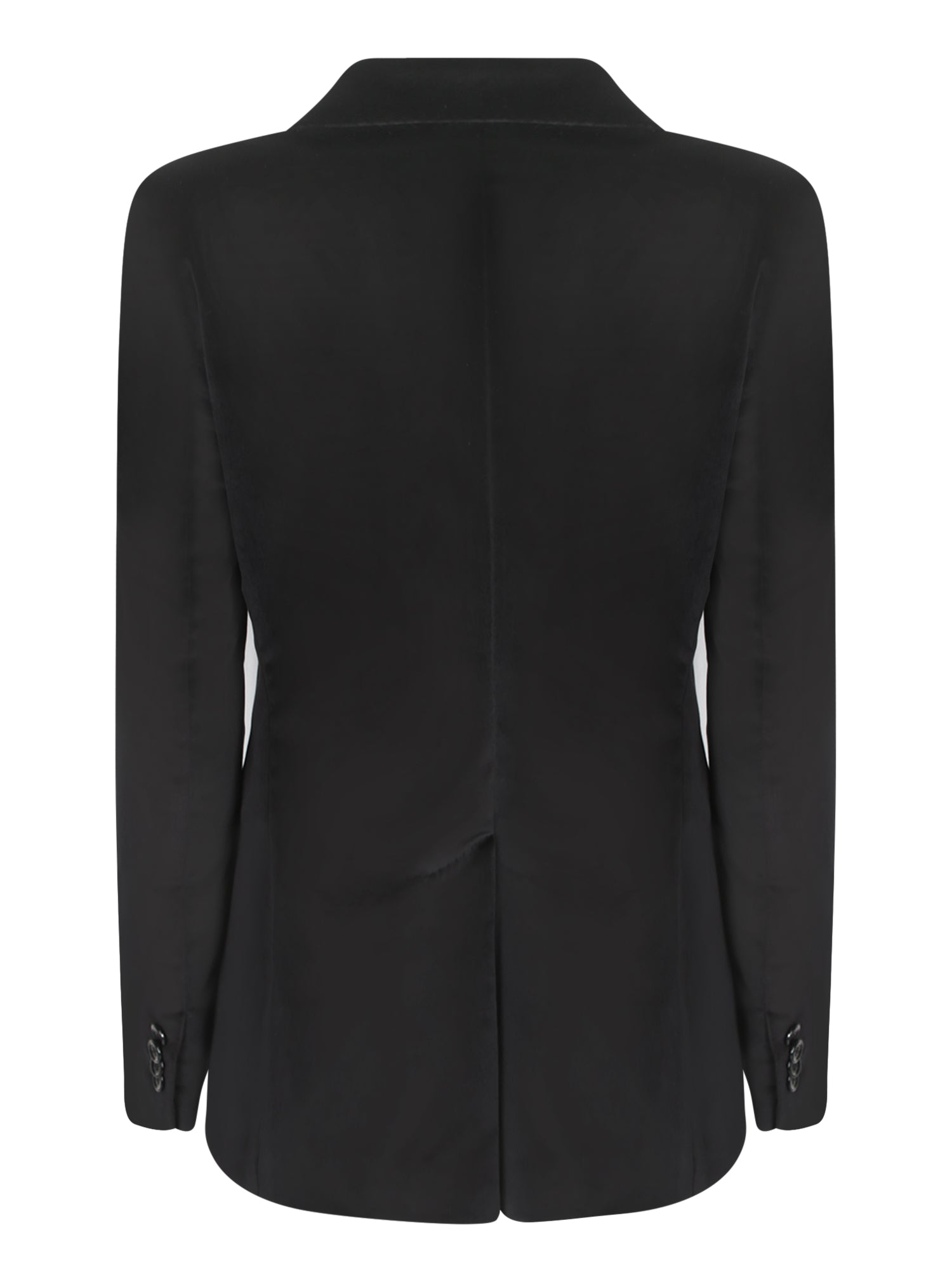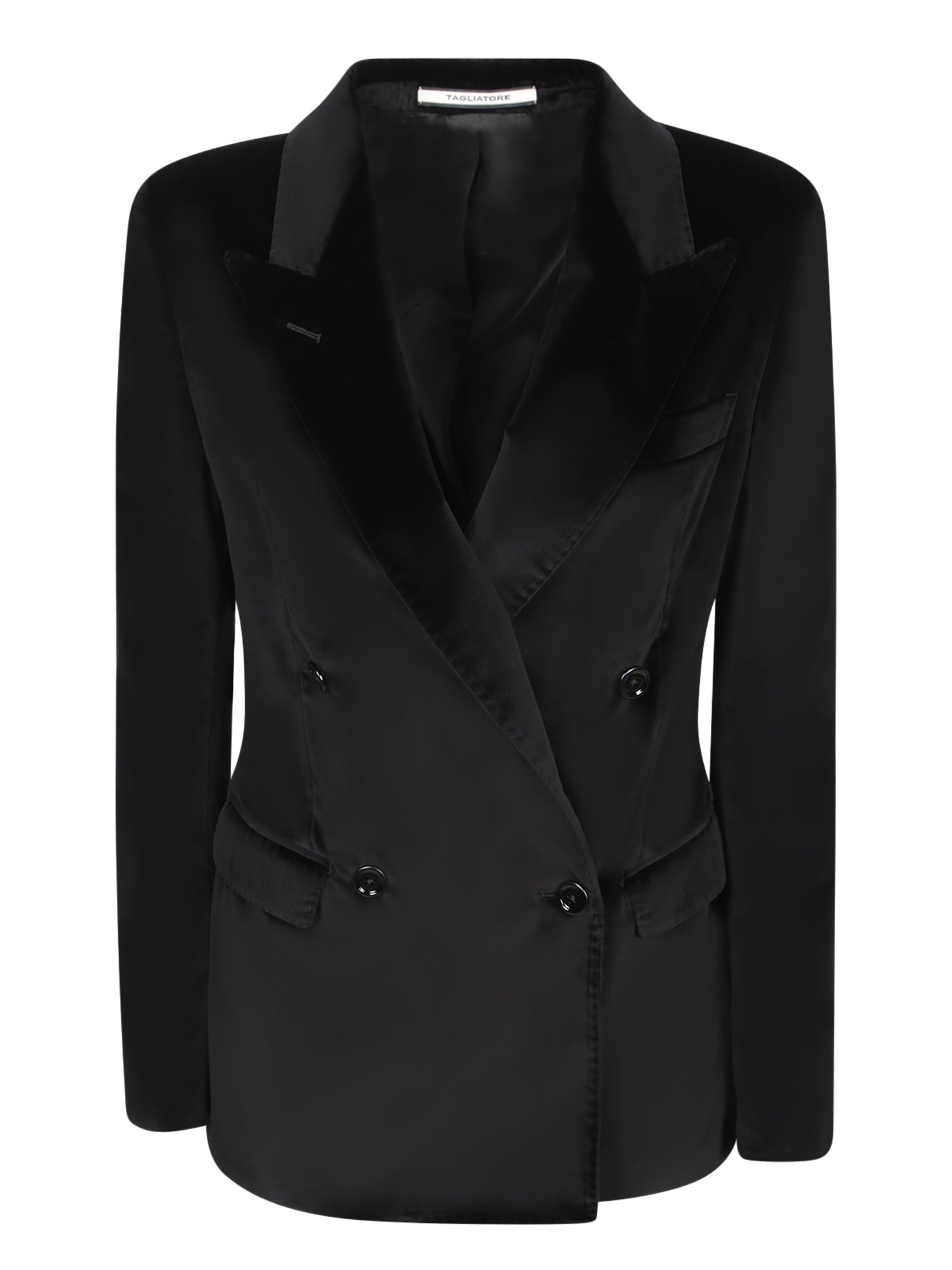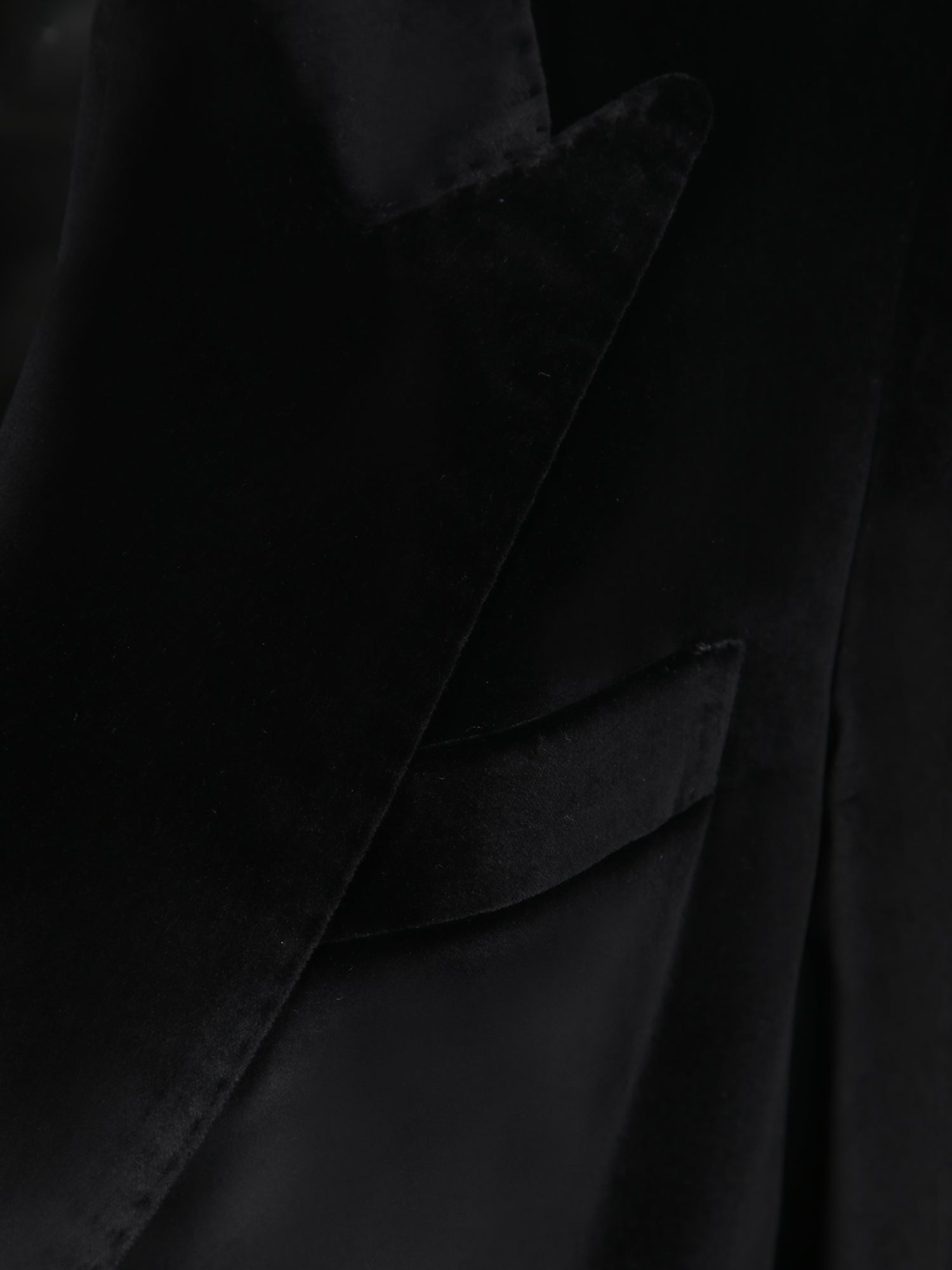 Double-breasted velvet jacket. Flap pockets, wide classic lapels.