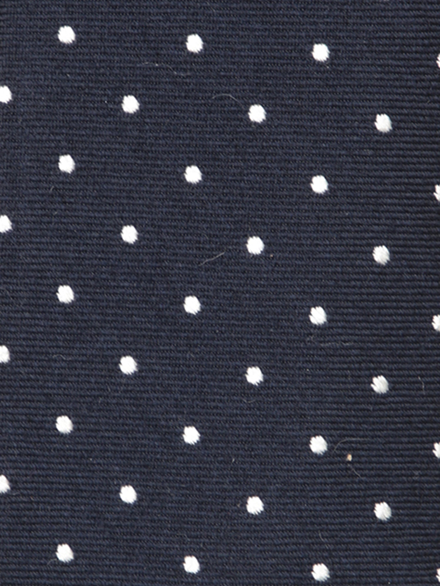 Silk fabric tie. White polka dot pattern on a black background. Width 8 cm.