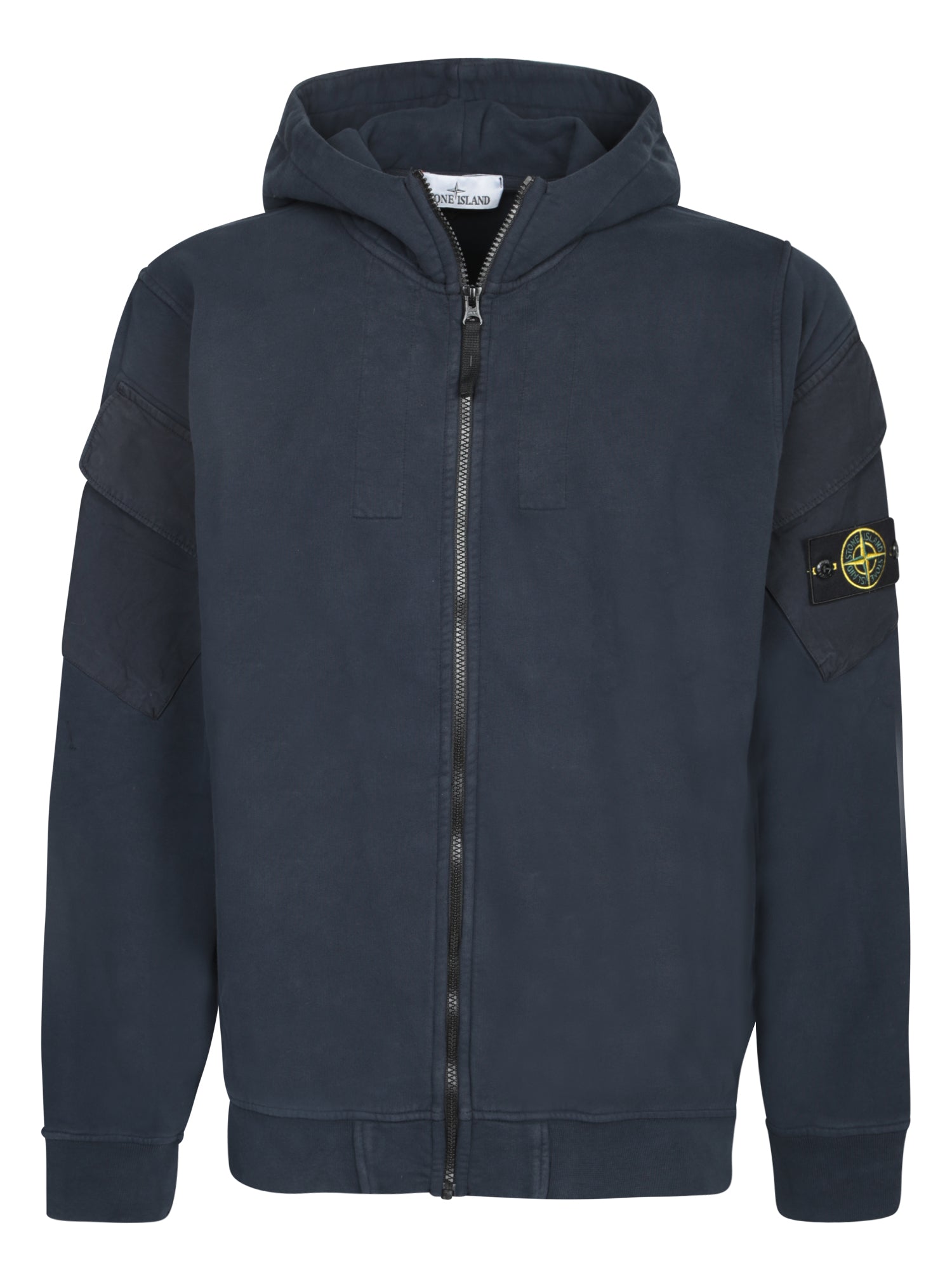 Hooded sweatshirt with front zip closure, applied pocket with embossed logo.