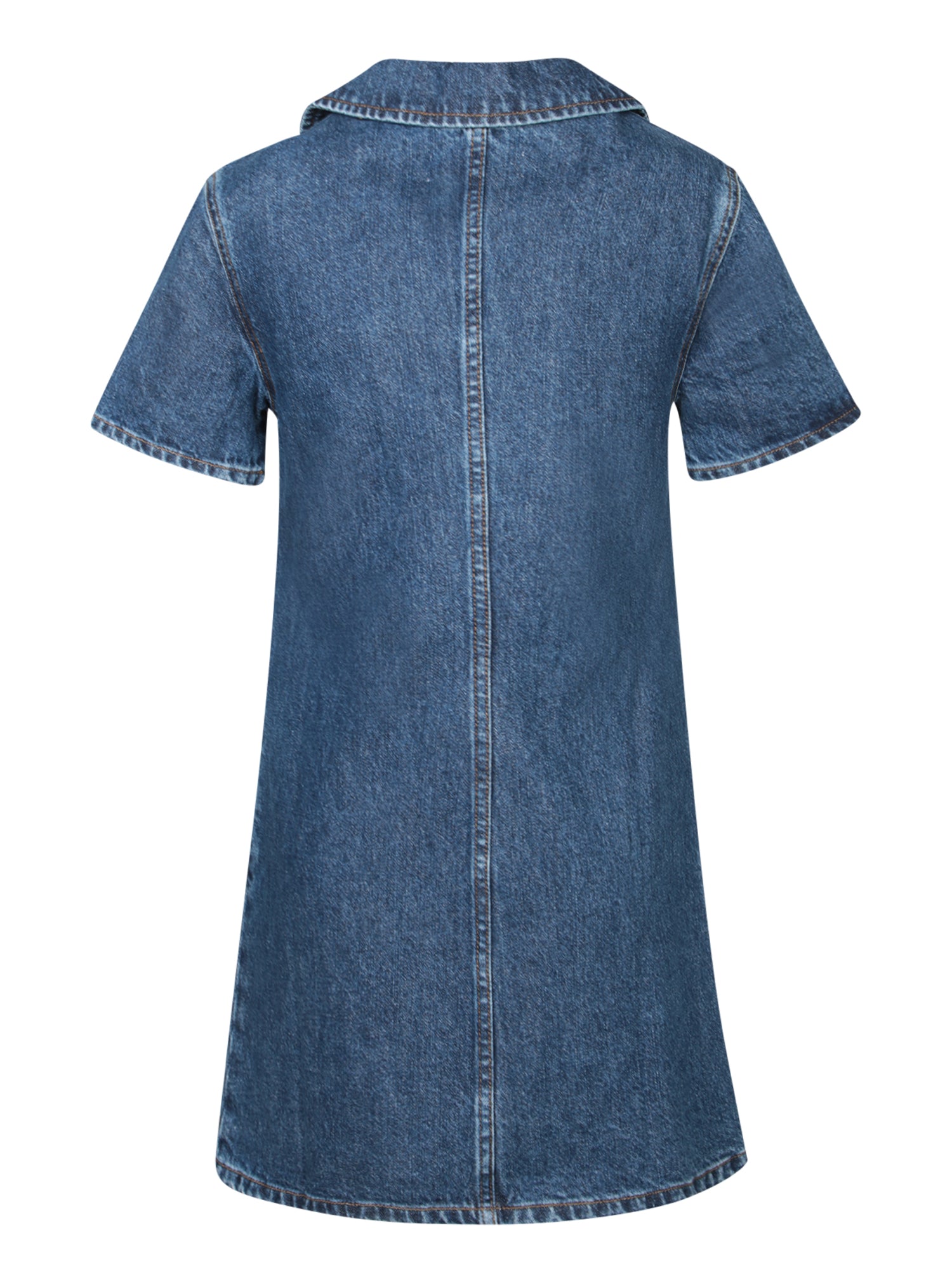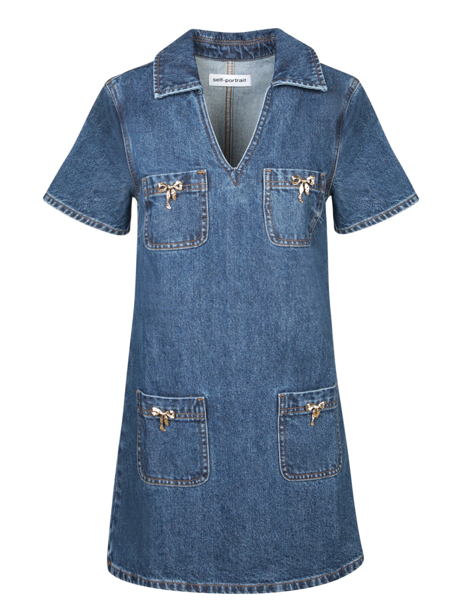 Short sleeves, deep V-neck, pockets with crystal bow detail.