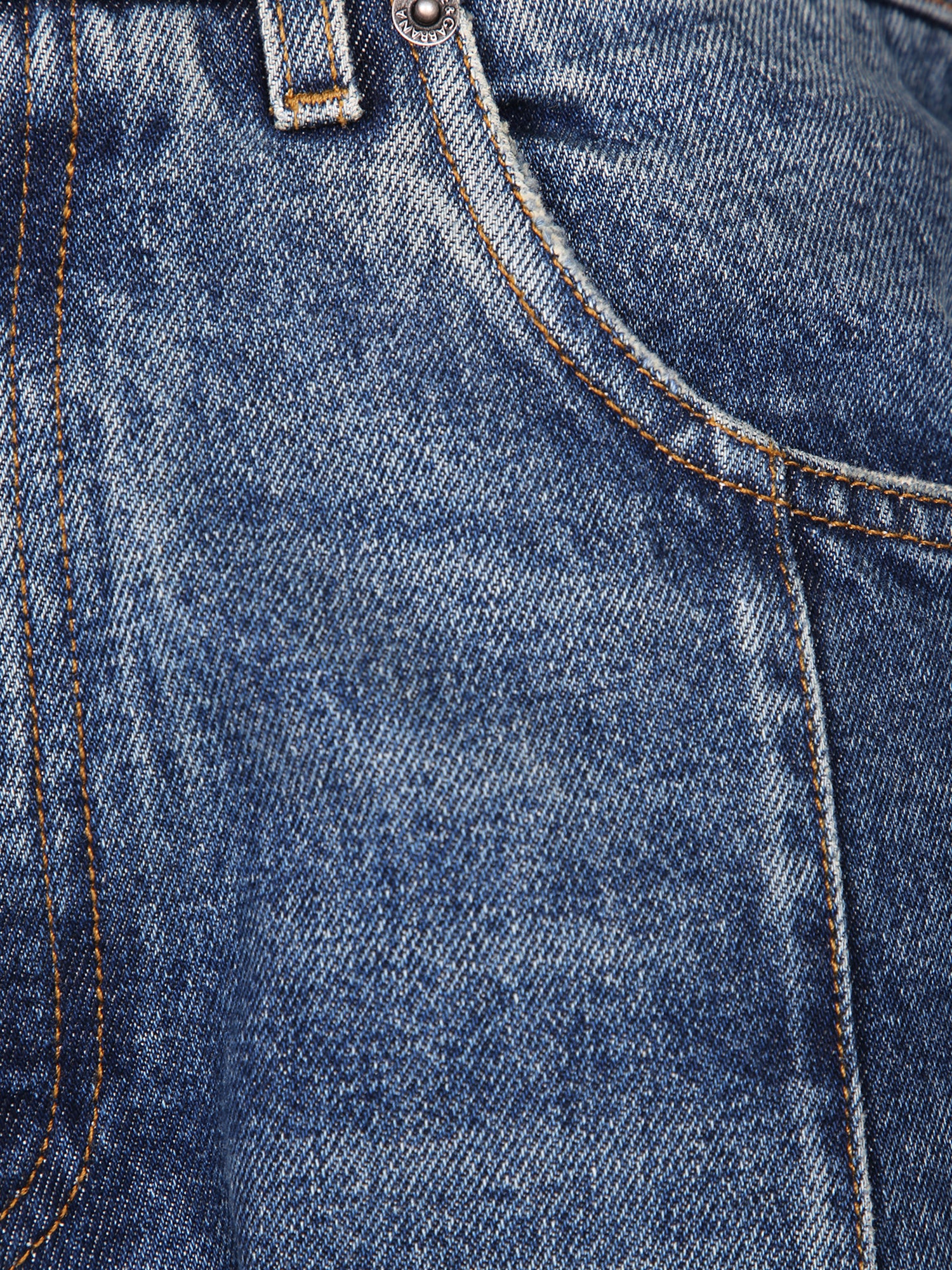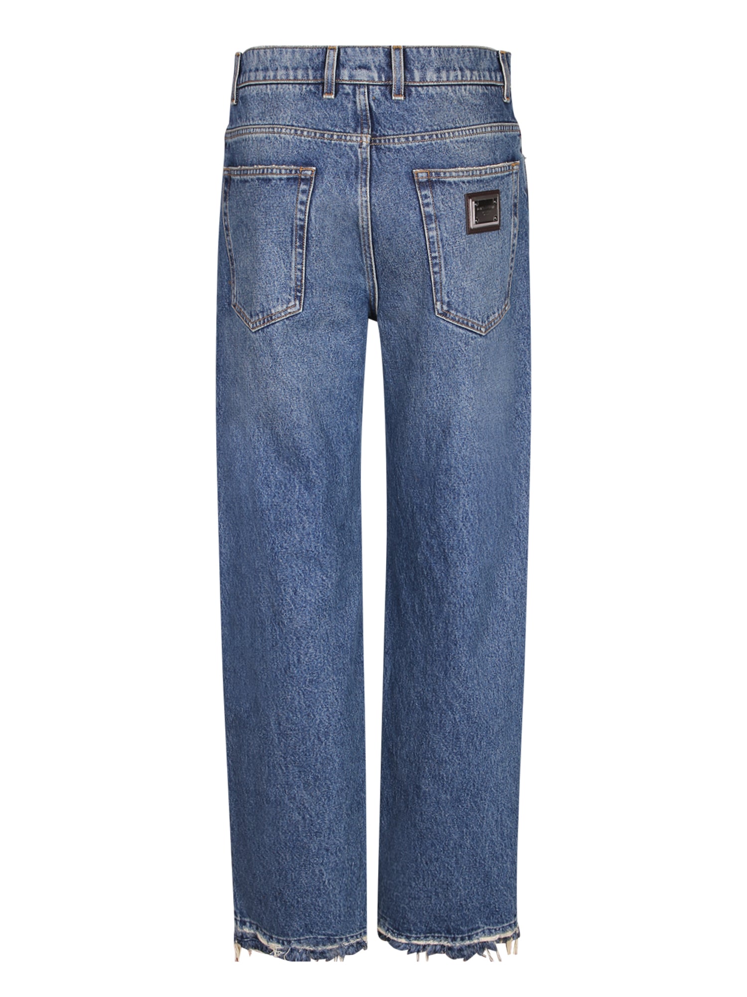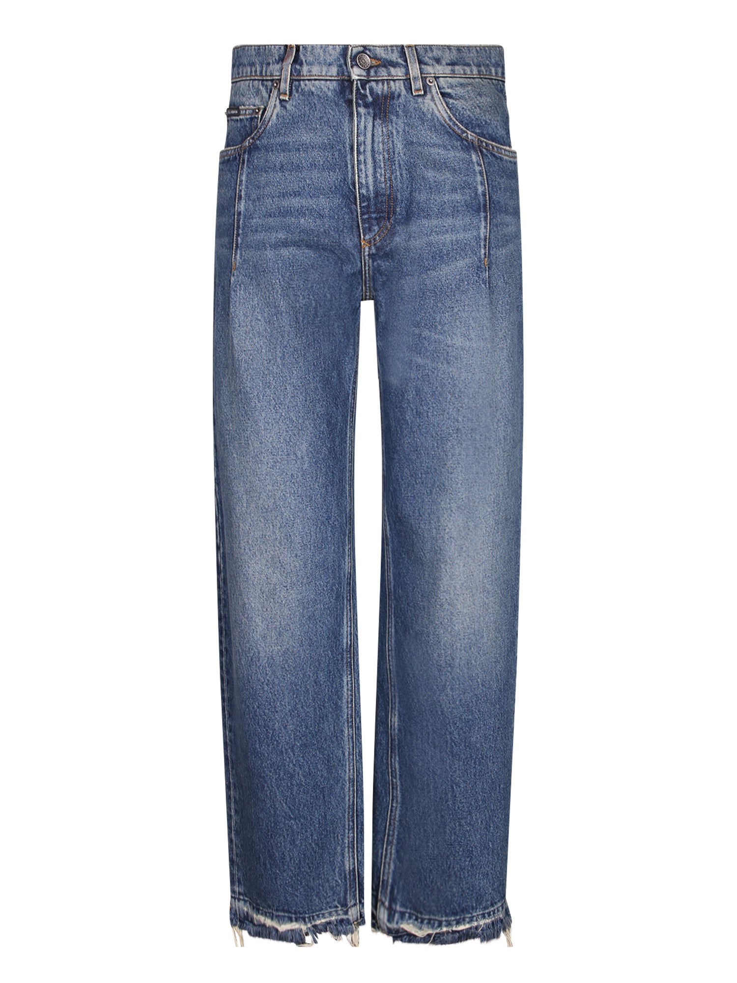 Flare jeans with frayed hem. Regular waist. Five pockets.