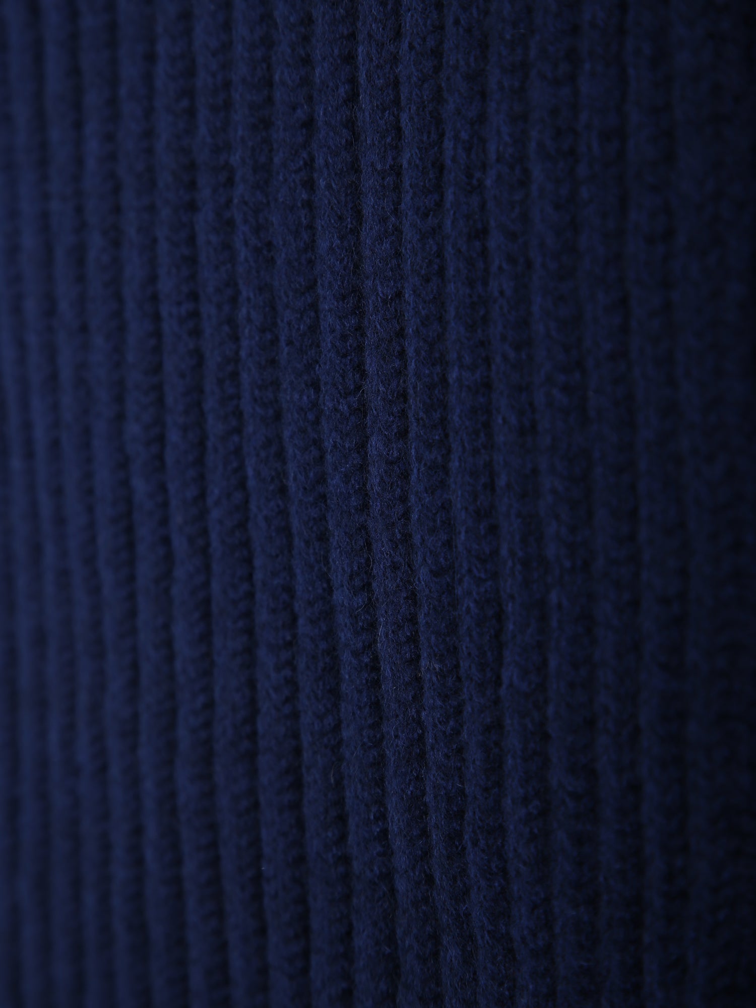 Ribbed knit fabric. Deep blue color. Minimalist finishings.