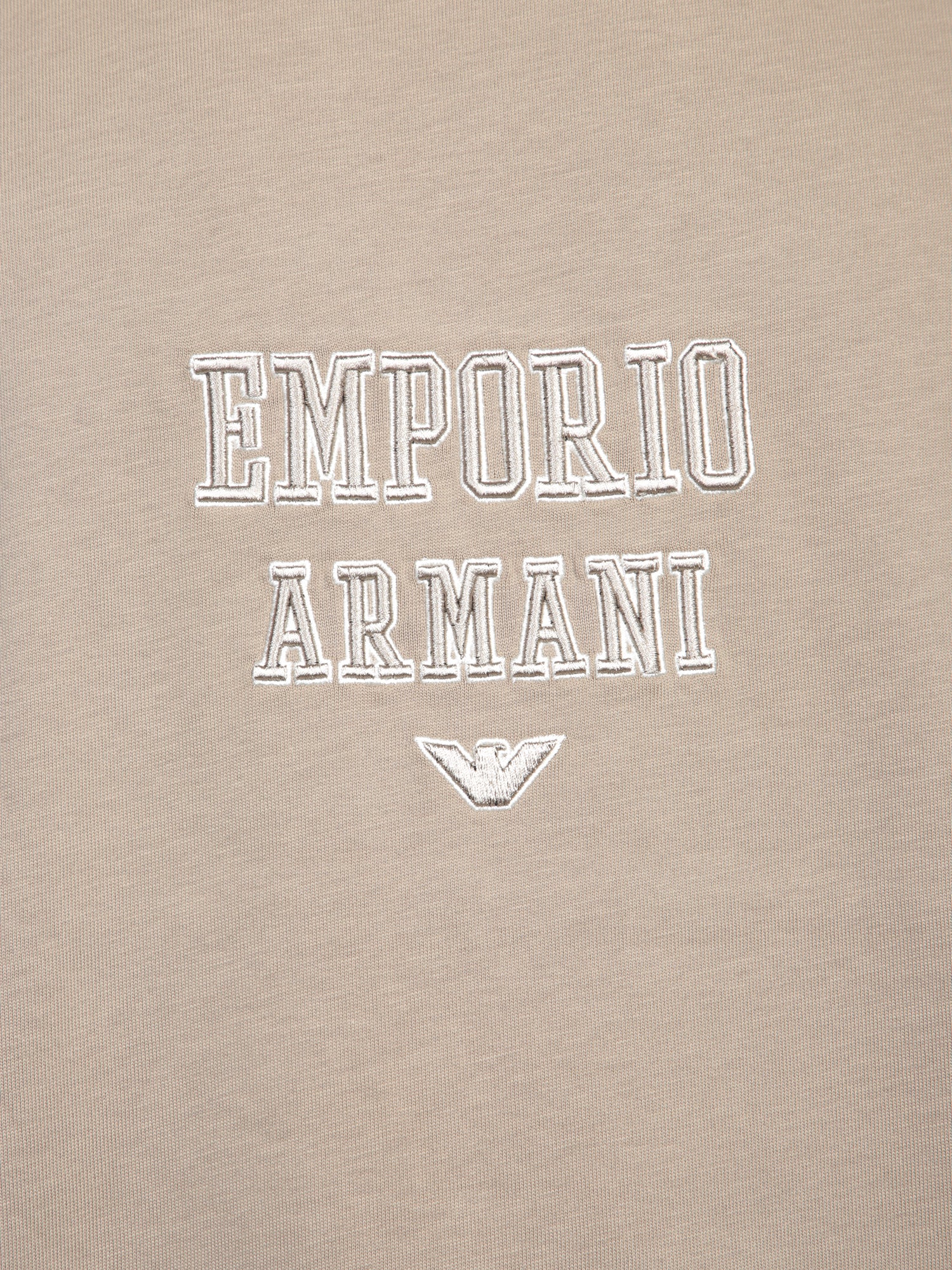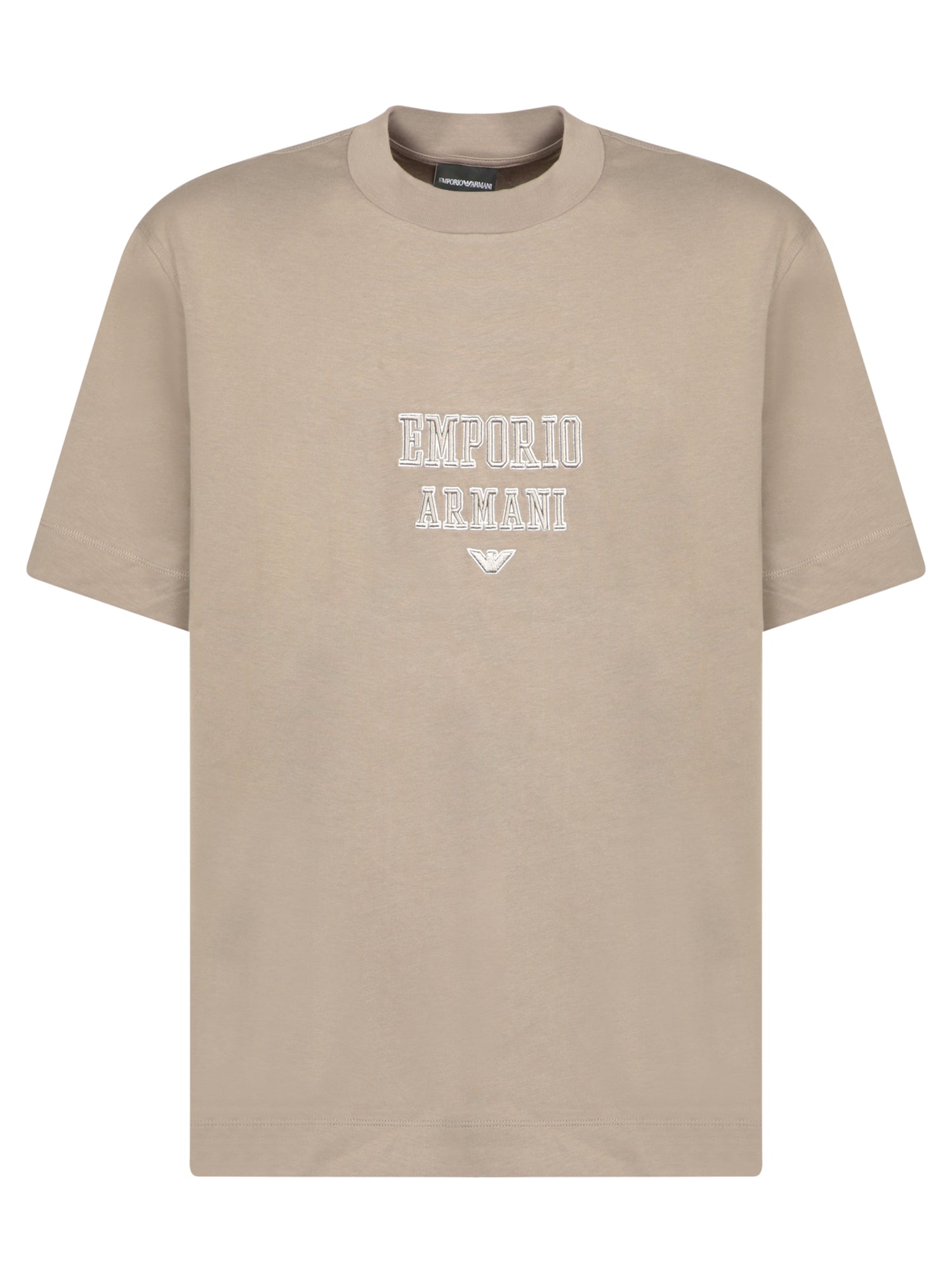 This Emporio Armani tortora-toned T-shirt features a timeless design, highlighted by the iconic contrasting logo for a touch of sophisticated flair.