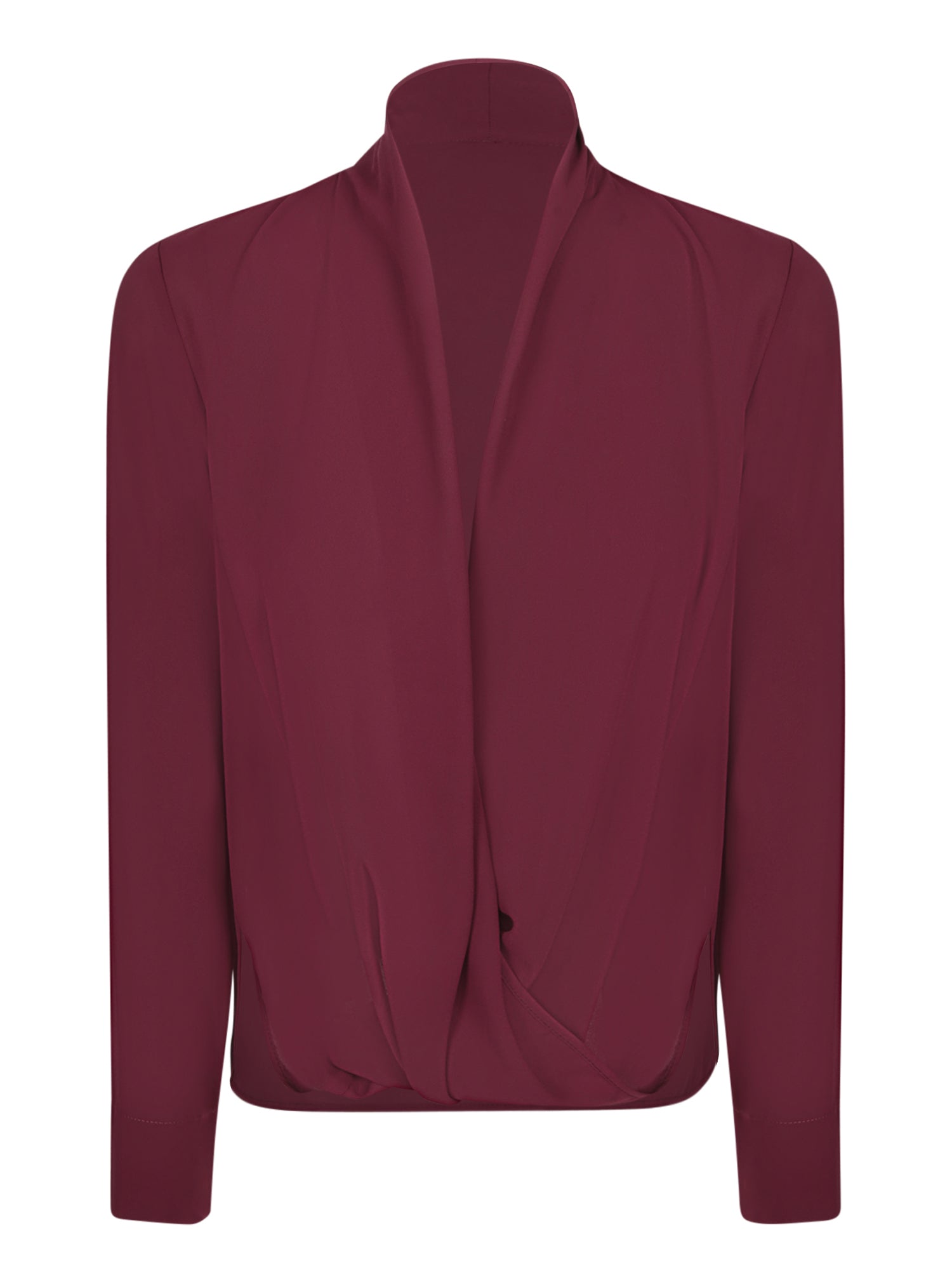 Viscose georgette tunic. Crossover design. Long sleeves. Bordered finishing.