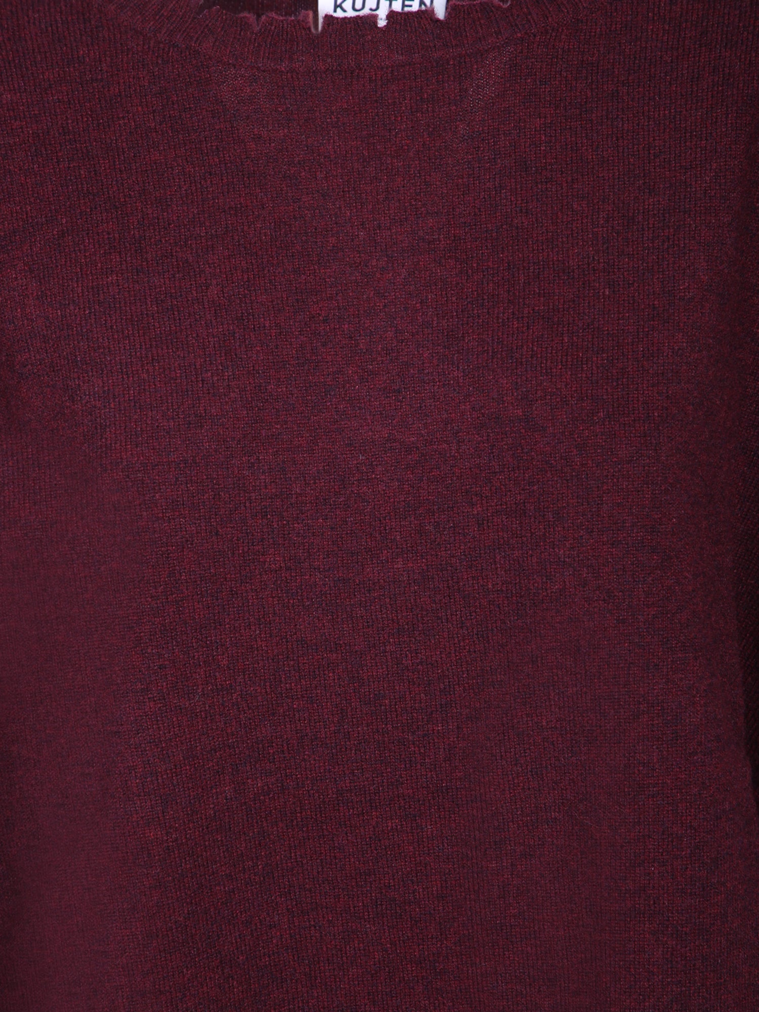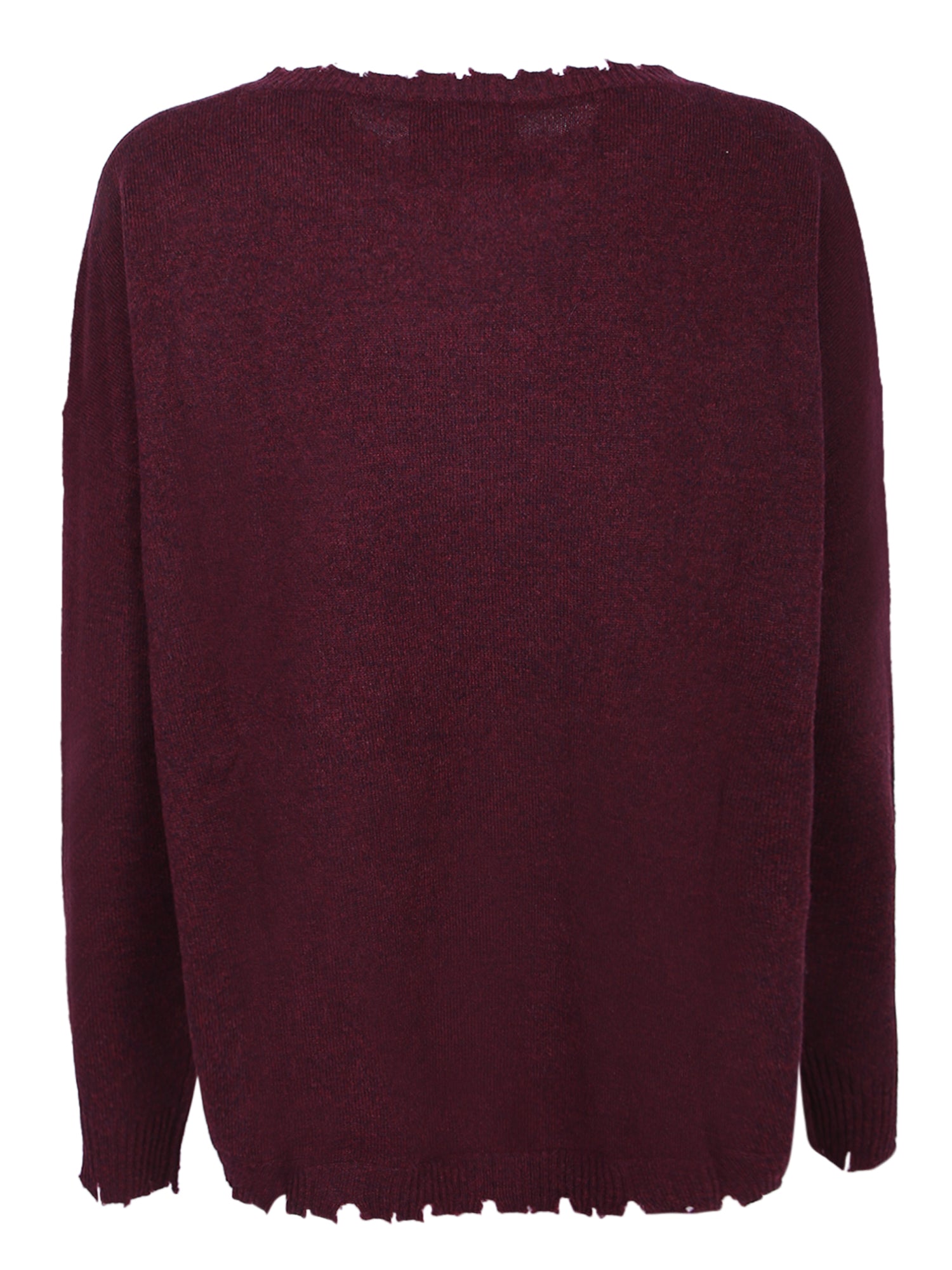 Mixed fabric sweater. Ribbed trims. Frayed hem.