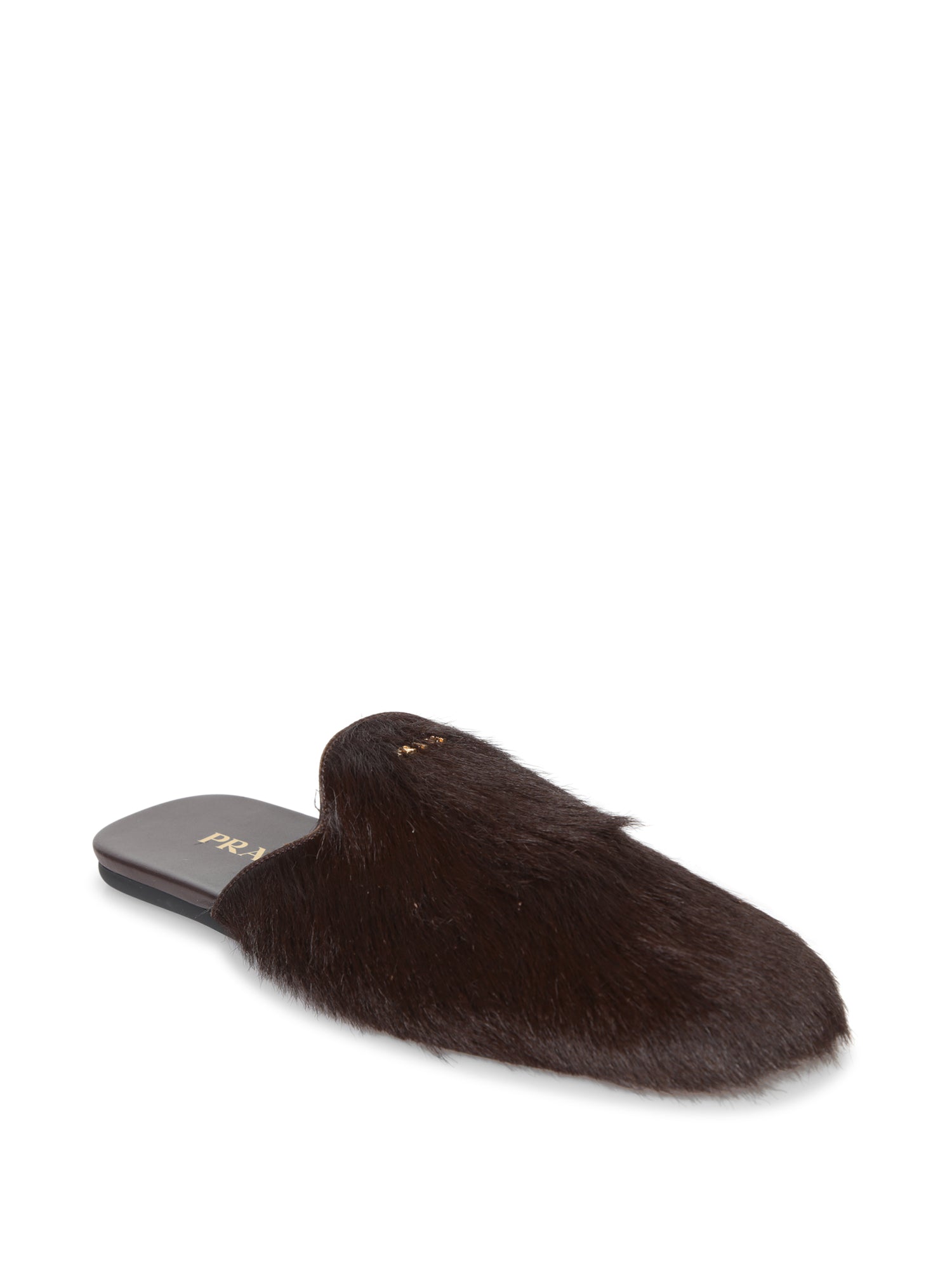 Calf hair sabot. Gold PRADA logo. Rubber sole.