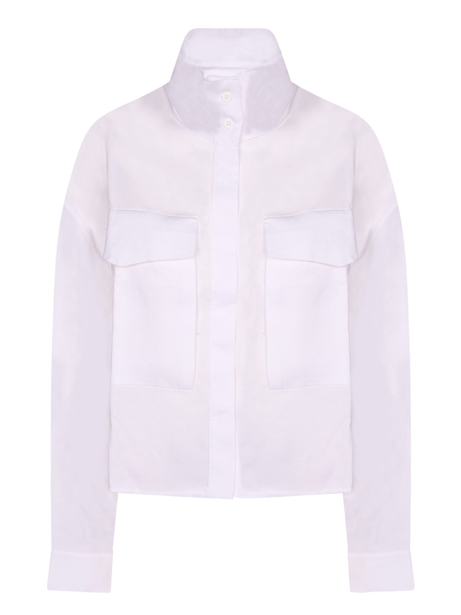 Long sleeve shirt made of lyocell. Features a classic collar and front button closure. Two chest patch pockets.