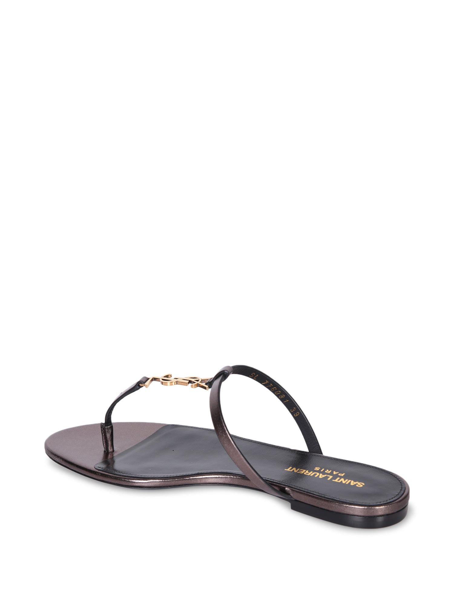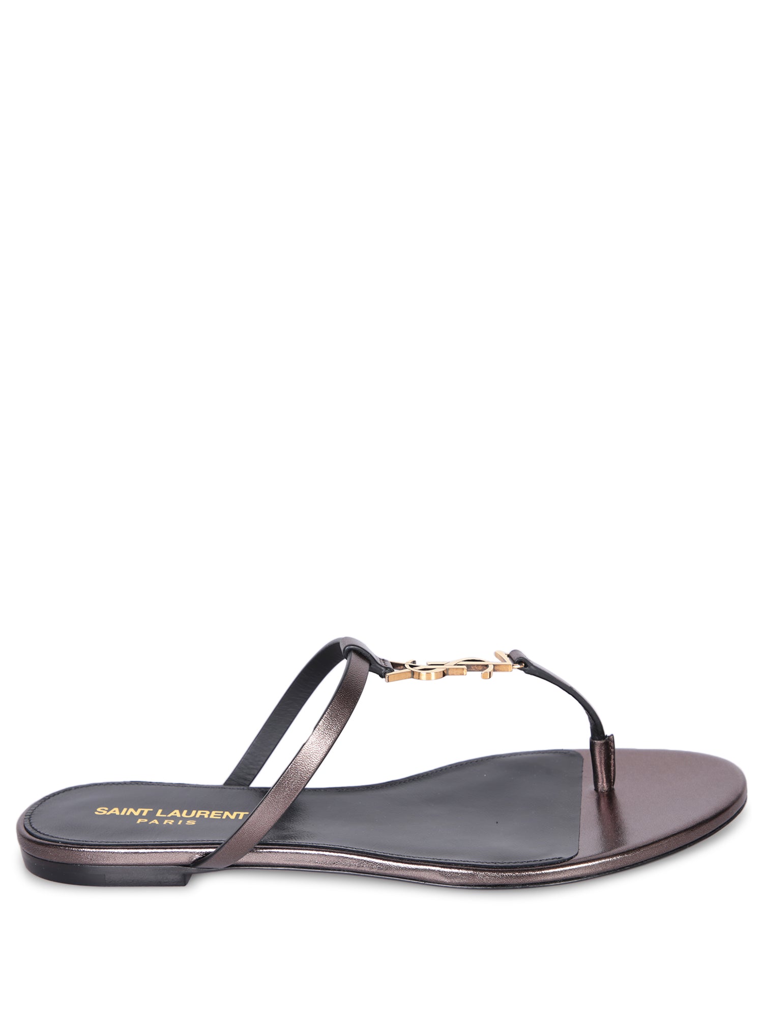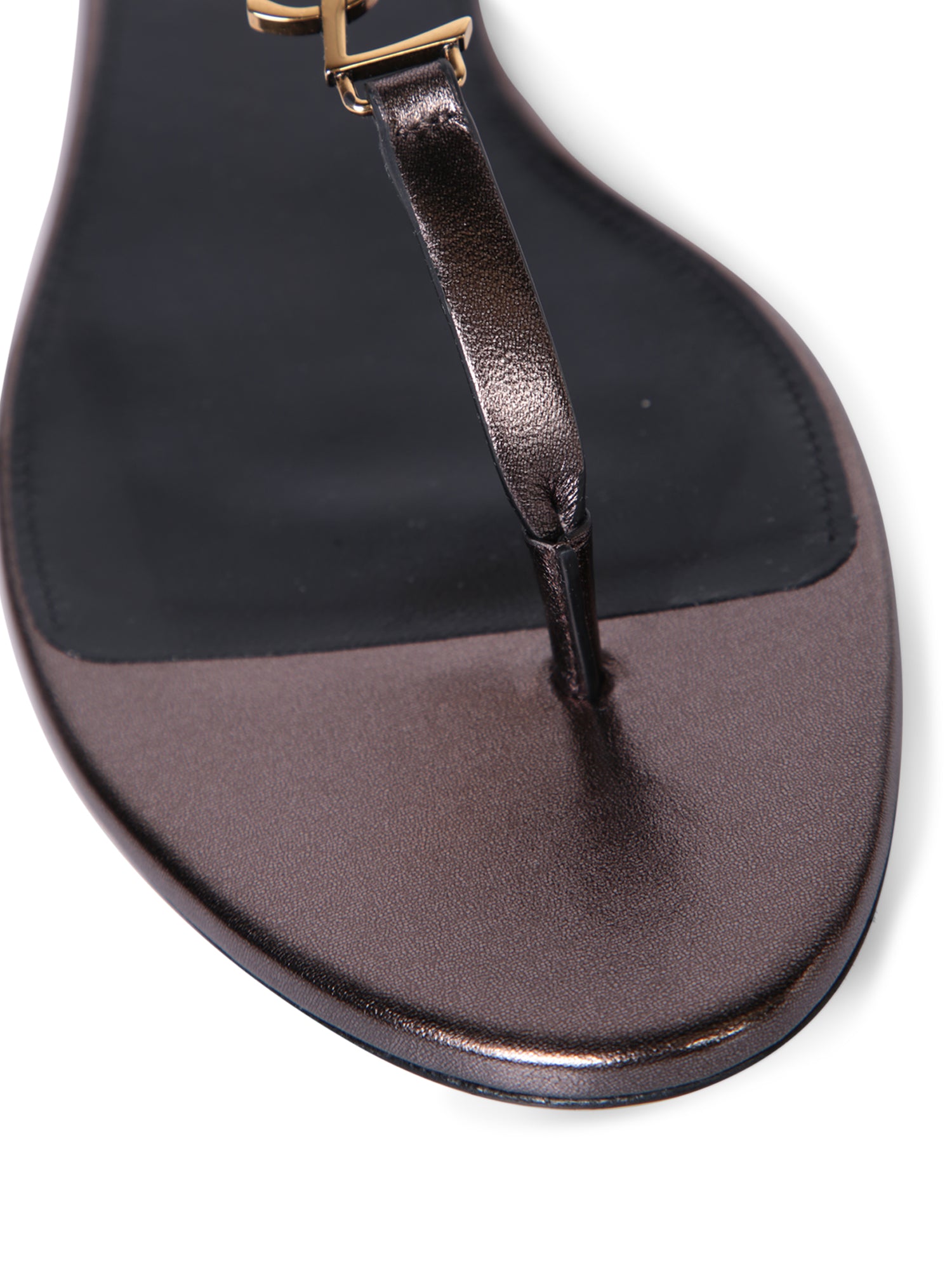 Open round toe. T band. Gold YSL logo. Heel height: 0.5 cm