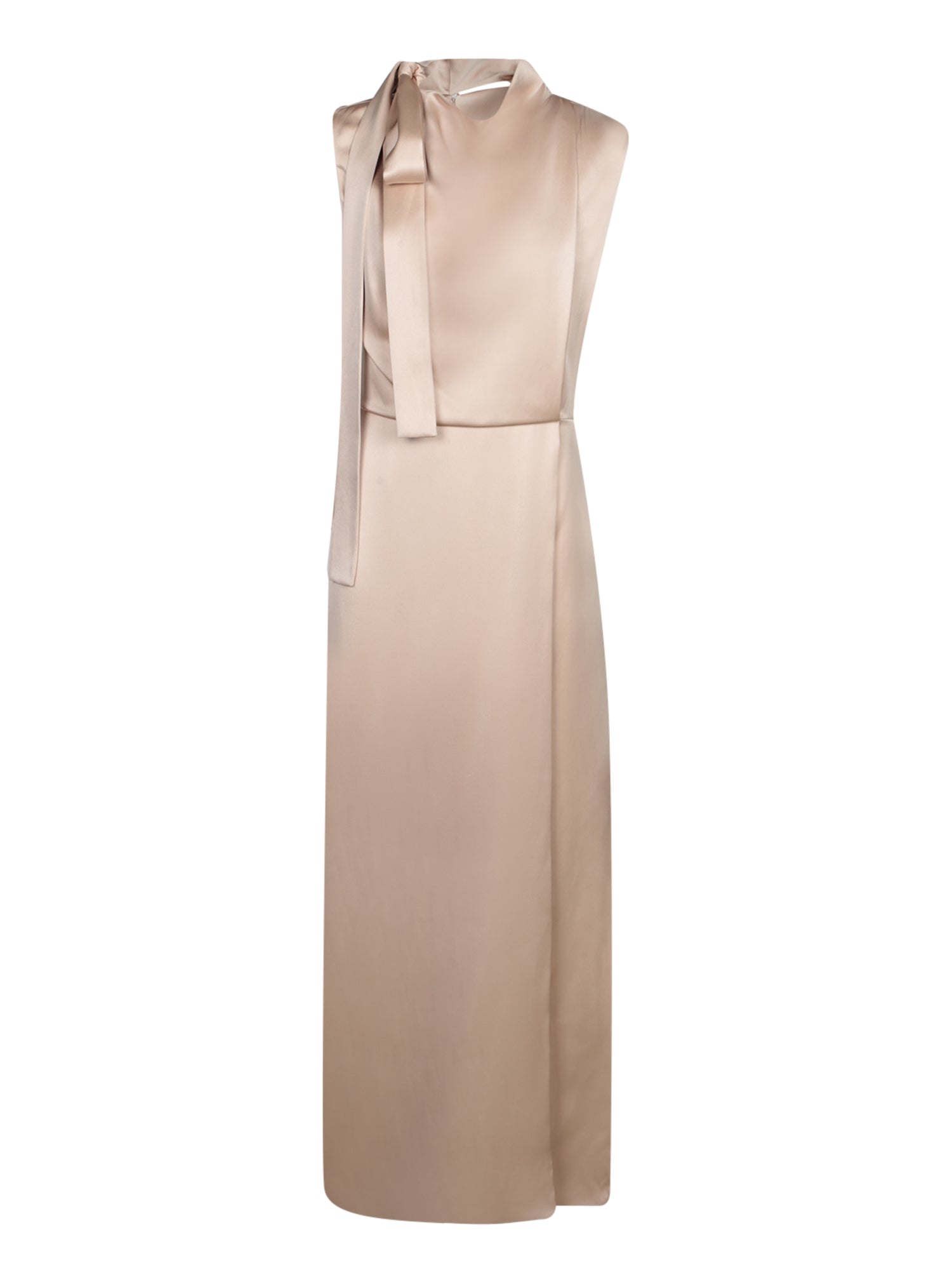 Elegance and sophistication merge in this FENDI champagne silk dress. Featuring a delicate bow at the neck adding a touch of femininity, the flowing silhouette is designed to flatter any figure.