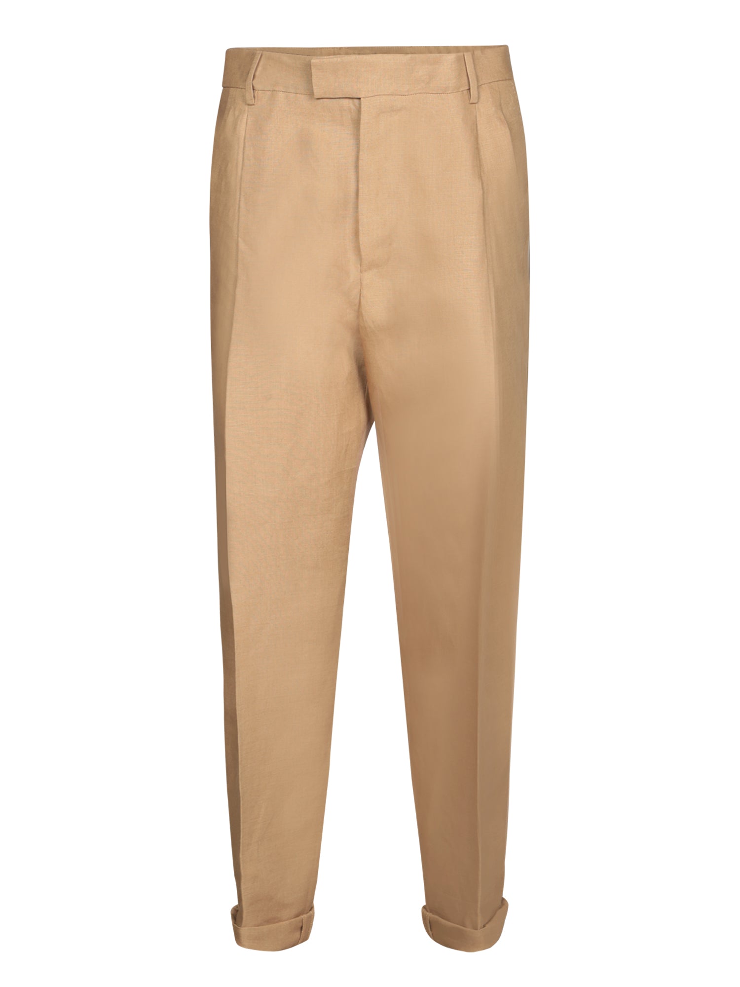 Mixed fabric trousers, zip and button closure, belt loops, two front pockets and two back welt pockets.