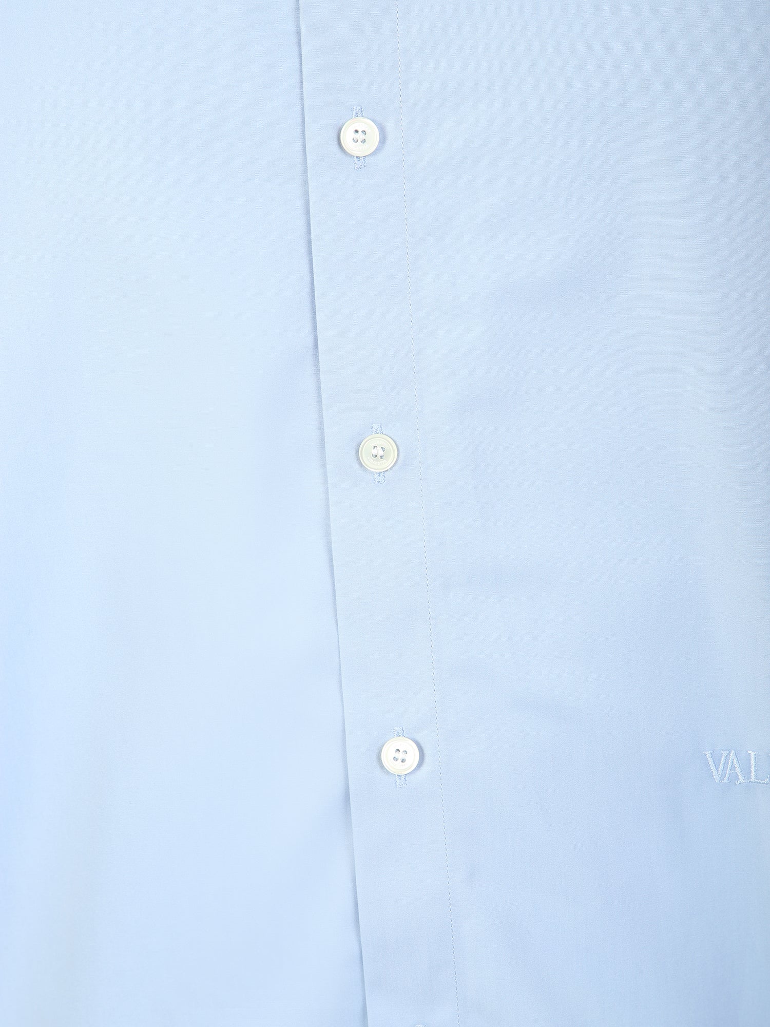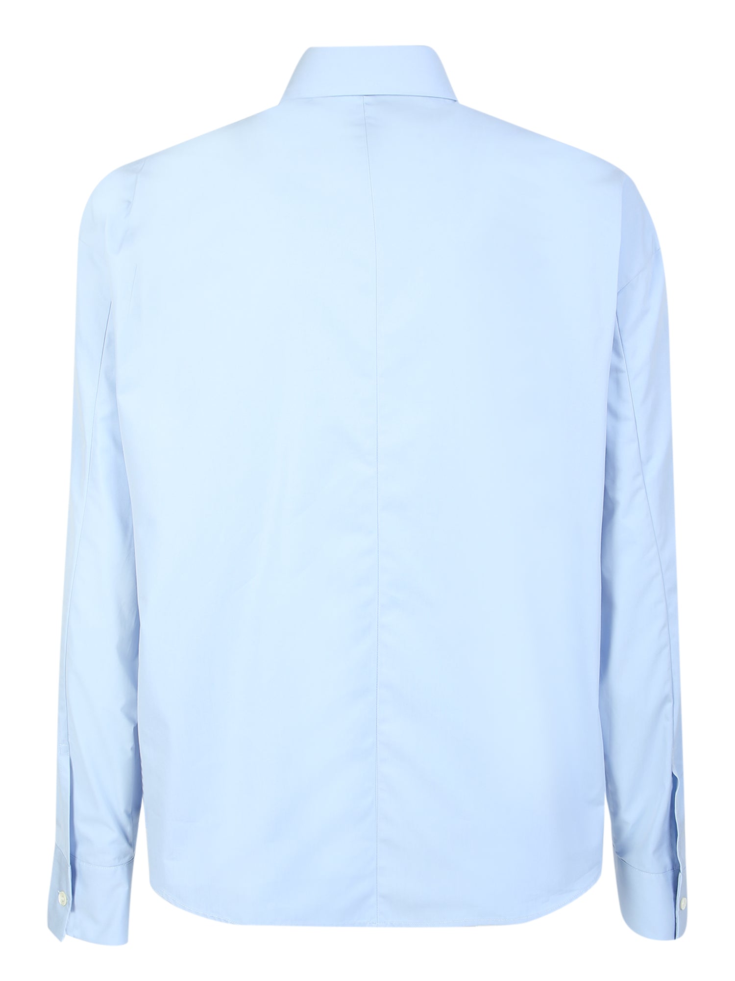 Pointed flat collar. Long sleeves. Front button fastening. Curved hem. Color: light blue