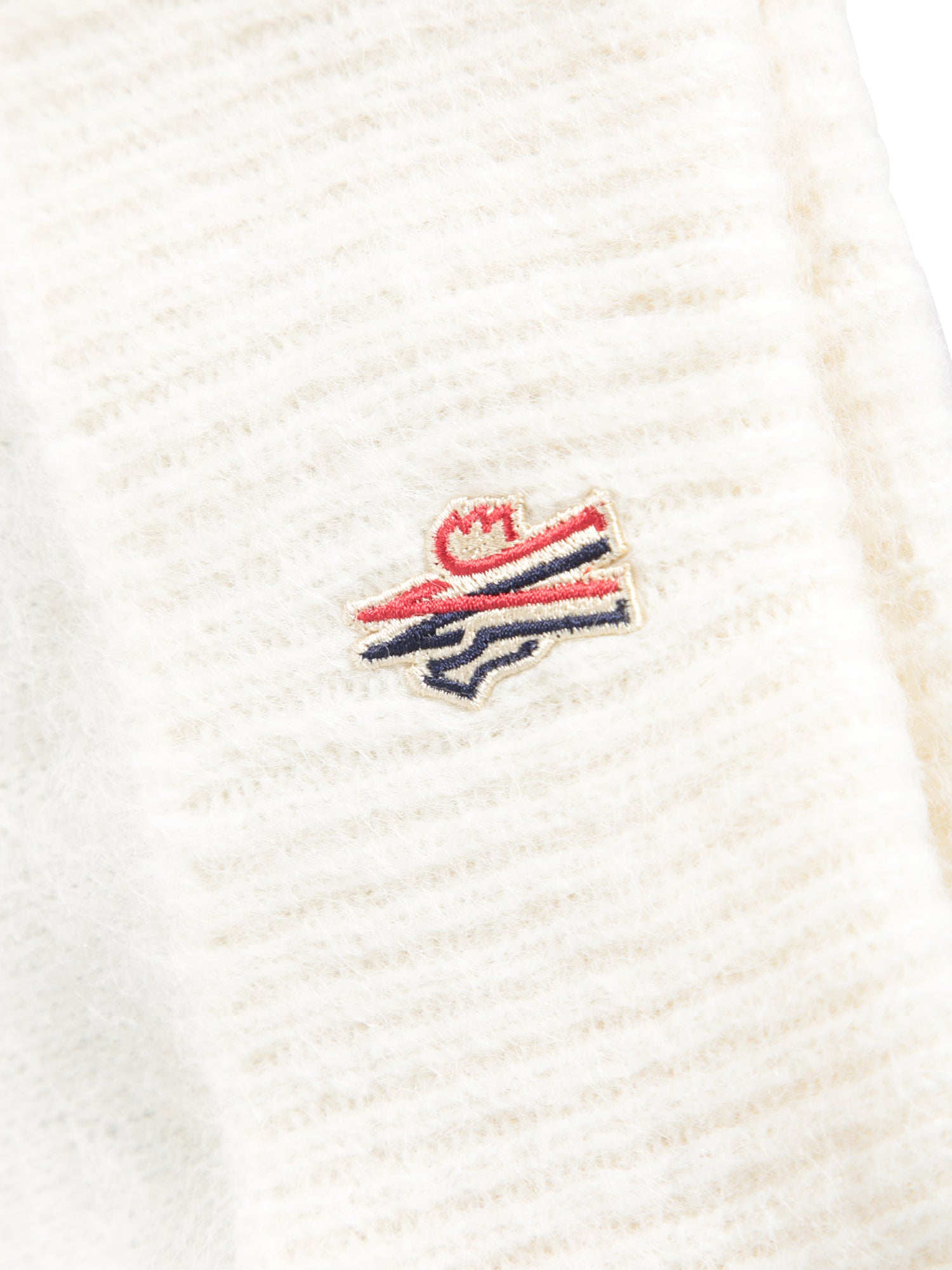 Fine knit beanie. Fold-over brim. Embroidered logo decoration.