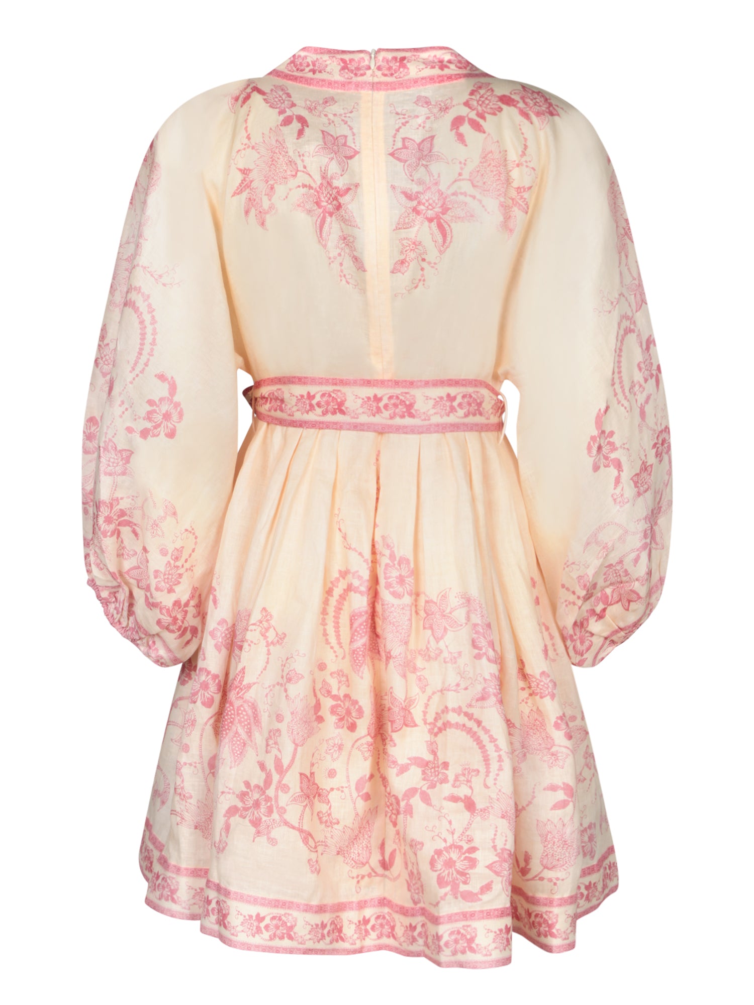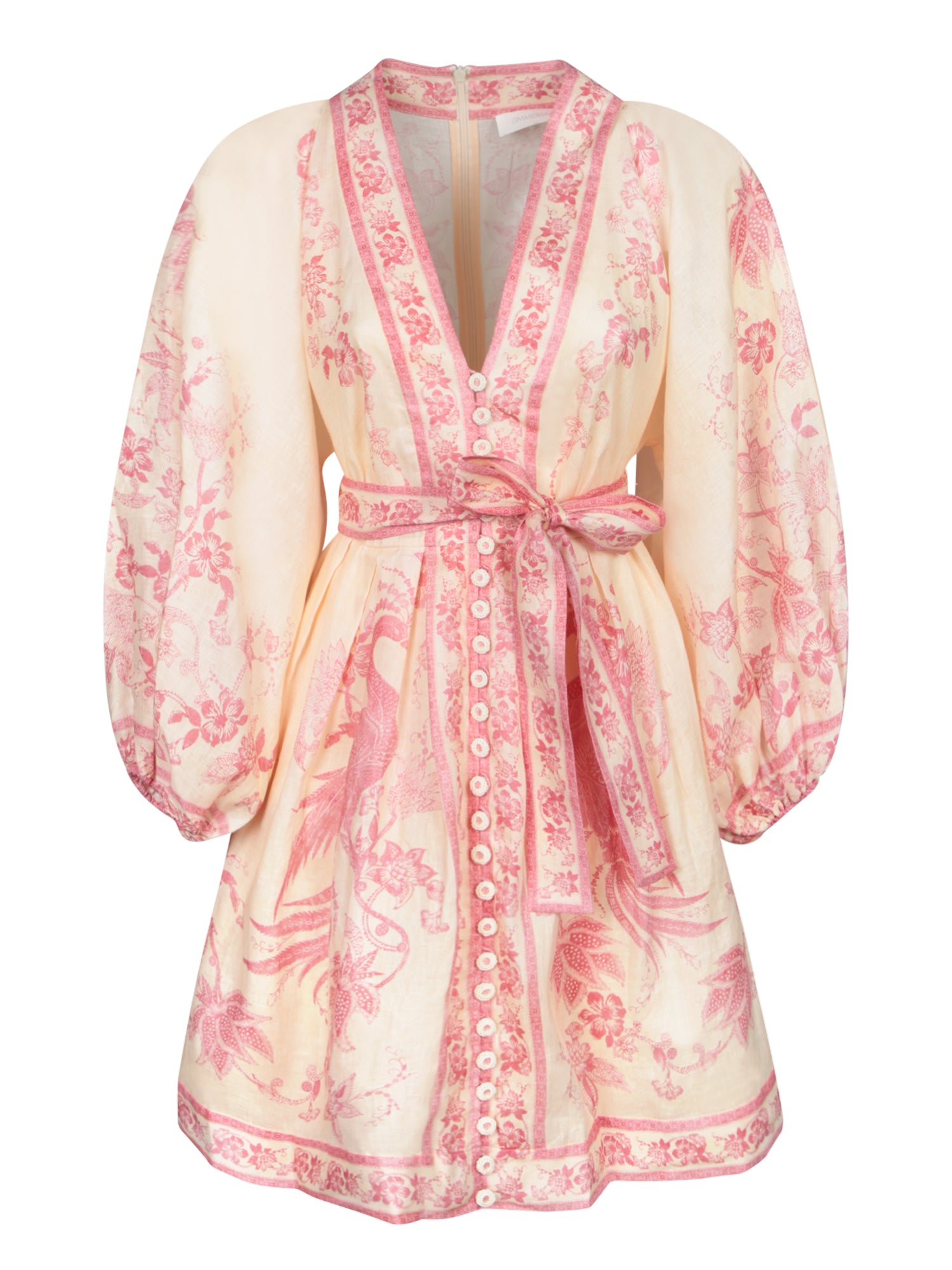 Cream Pink Linen Mini Plunge Dress