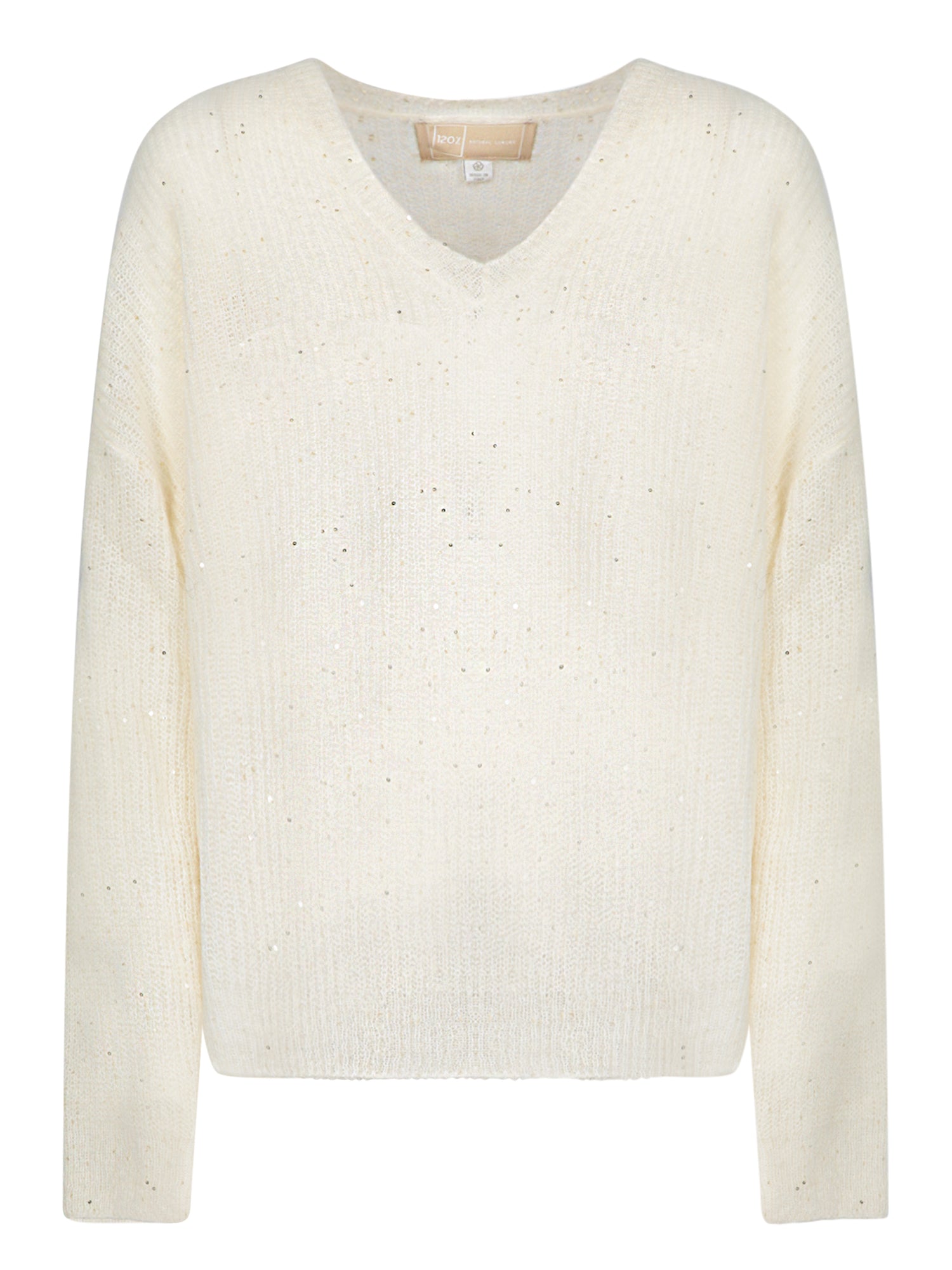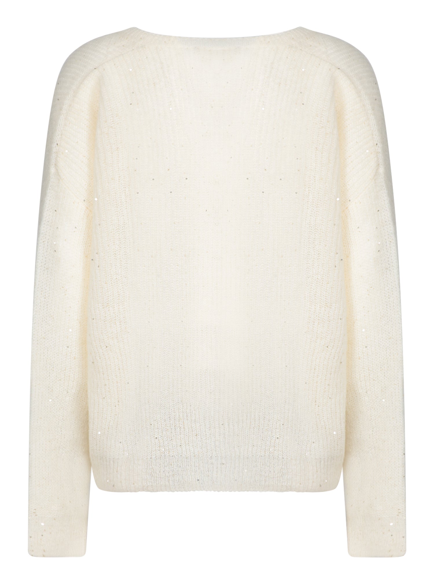 V-neck sweater in wool. Slightly iridescent fabric with contrasting details.
