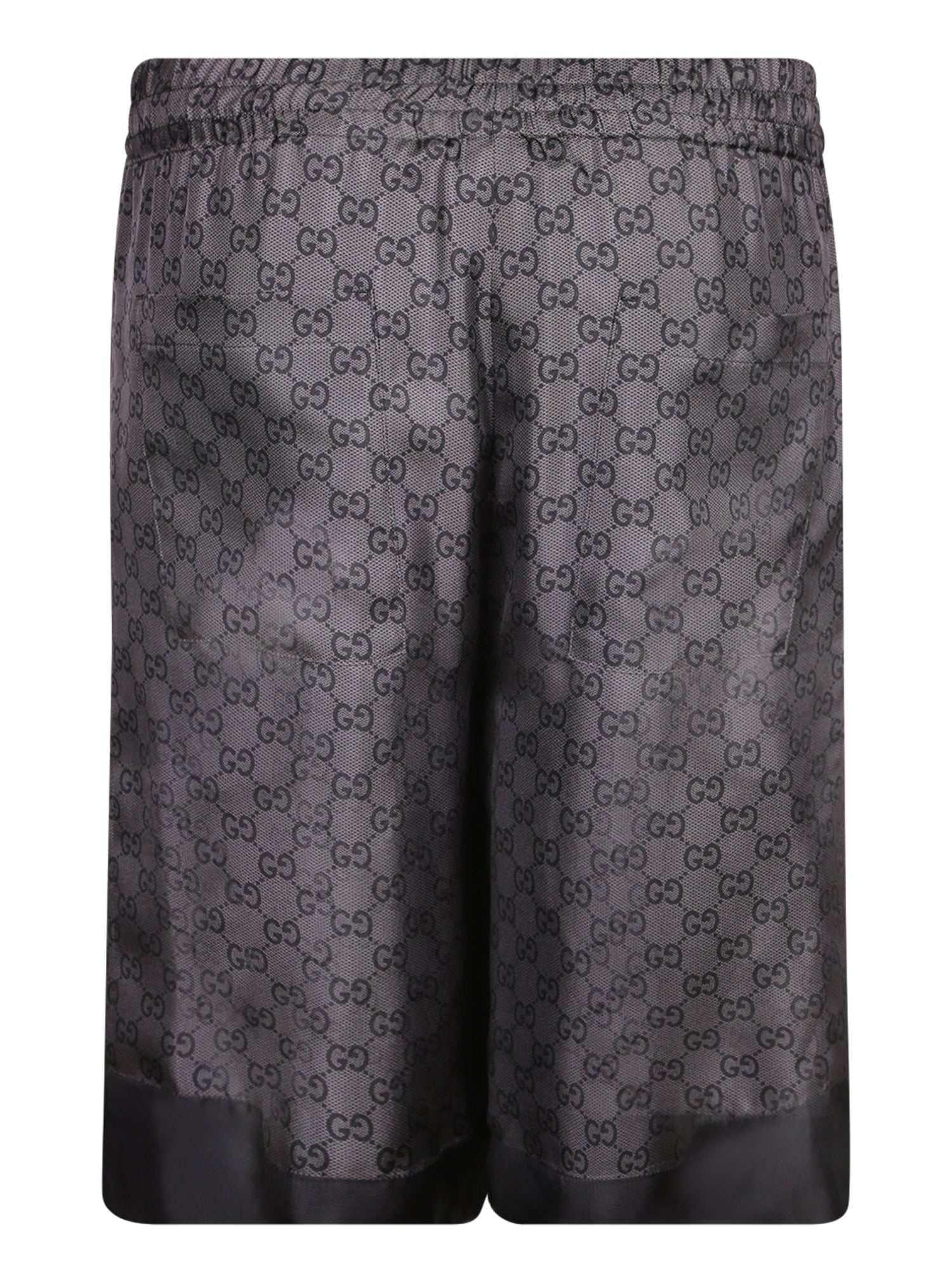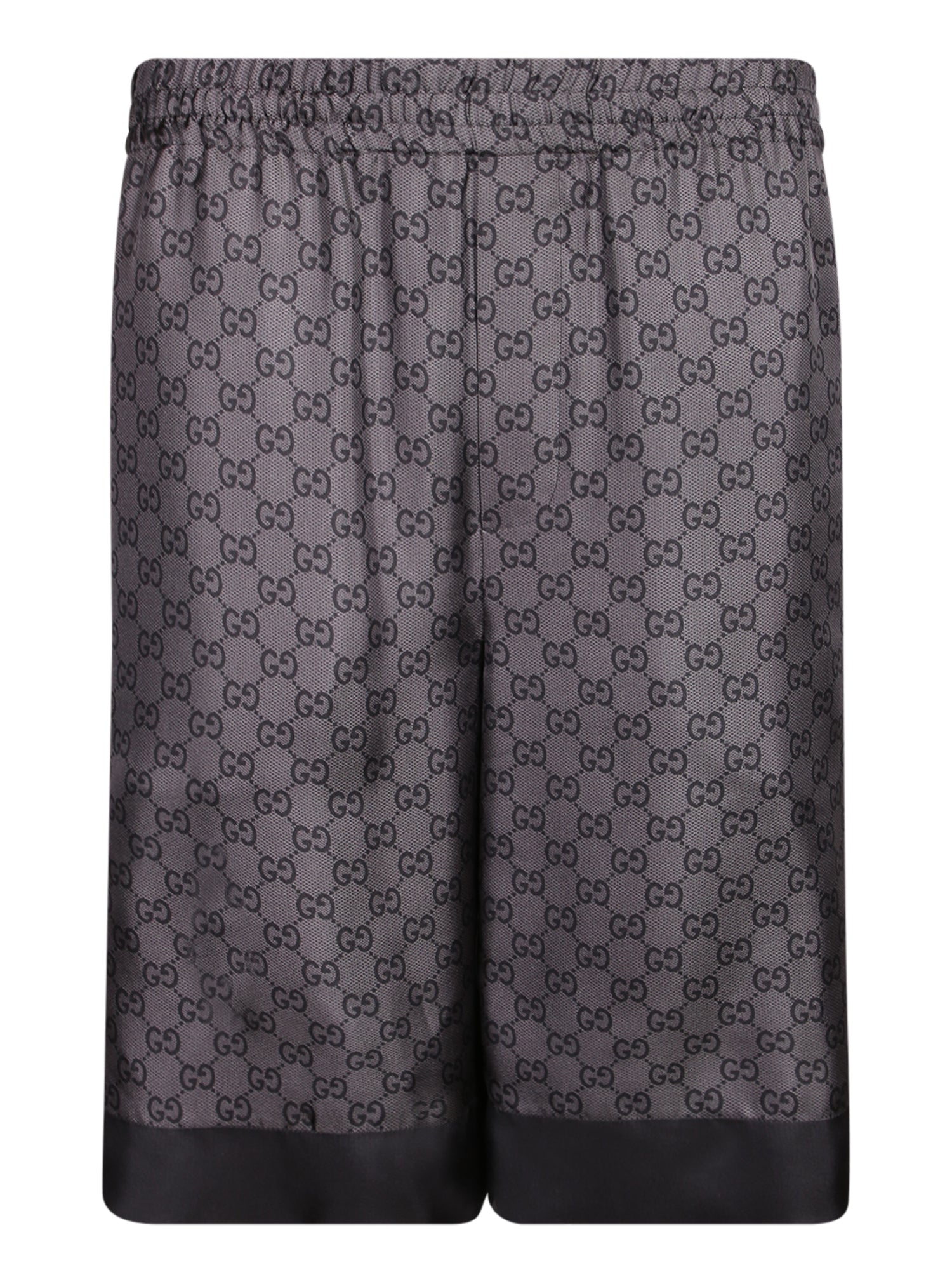 Silk Bermuda shorts. All-over GG print. Elasticated waist design.