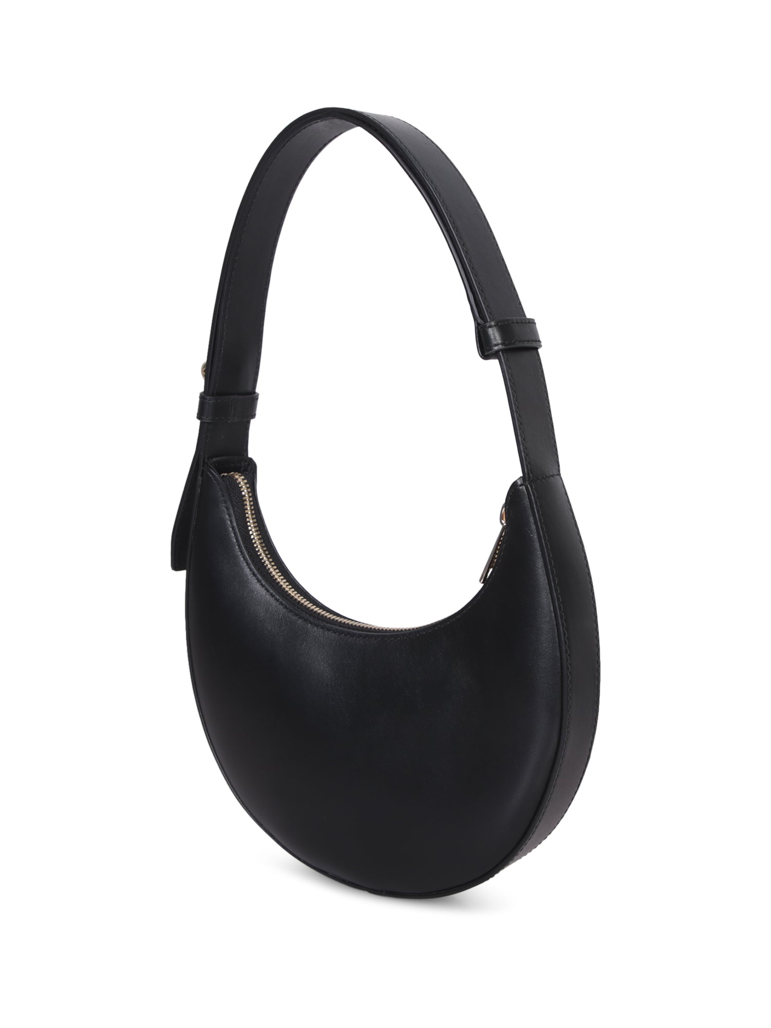 Smooth leather shoulder bag. Top zip closure. Adjustable shoulder strap.