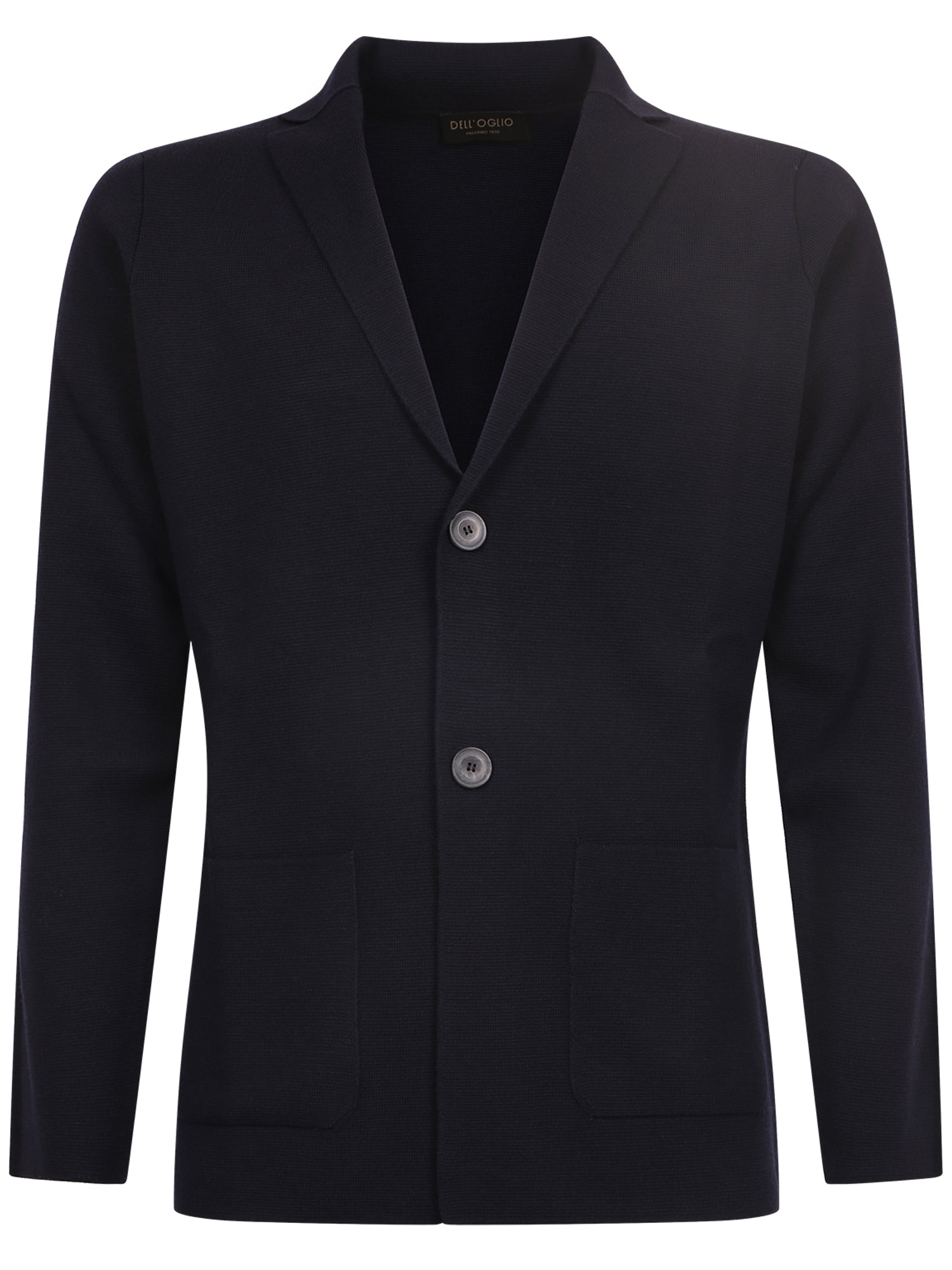 Smooth fabric cardigan with button closure. Front patch pockets. Ribbed cuffs and hem.