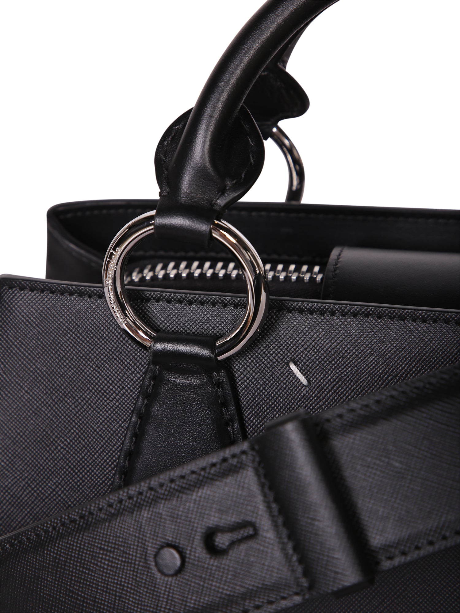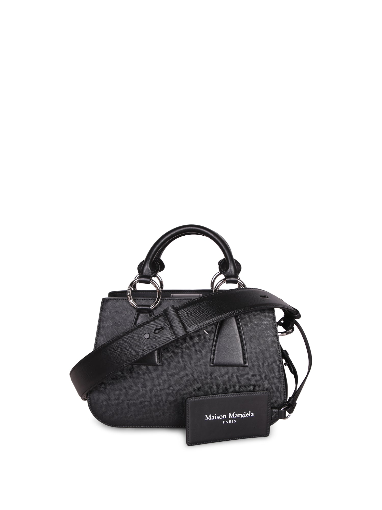 Crafted from premium black leather. Features an adjustable and removable shoulder strap. Distinctive brand detailing.