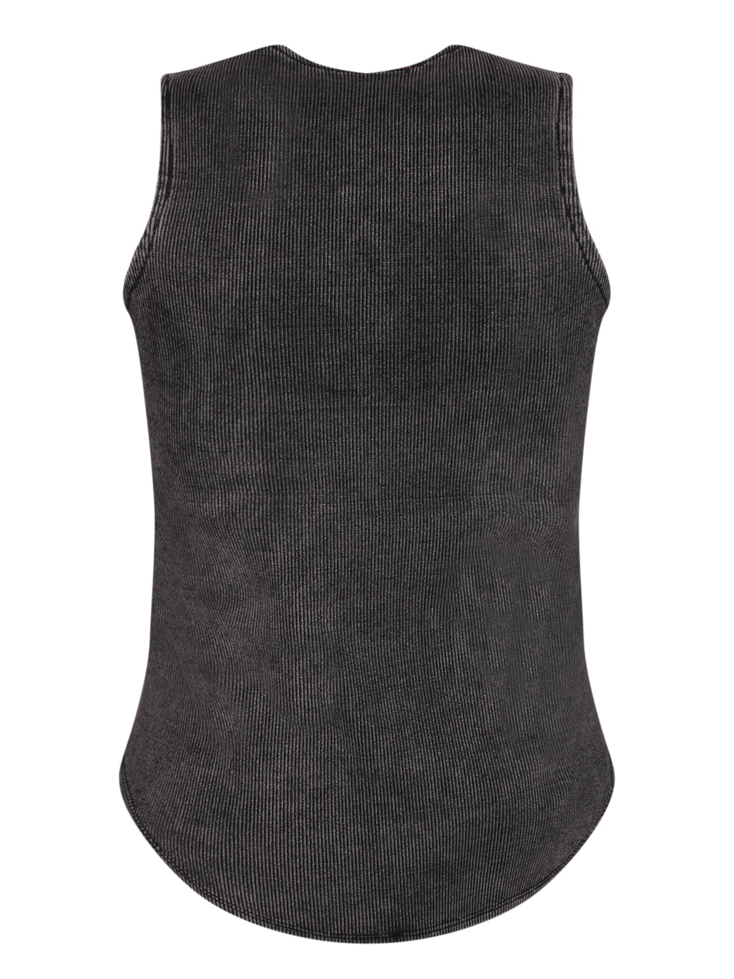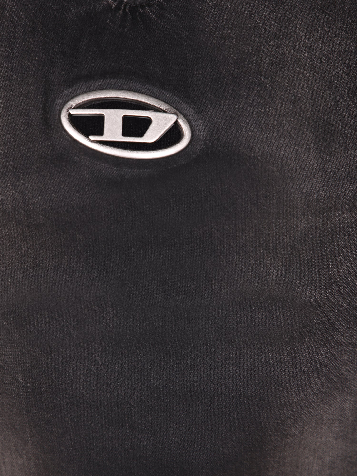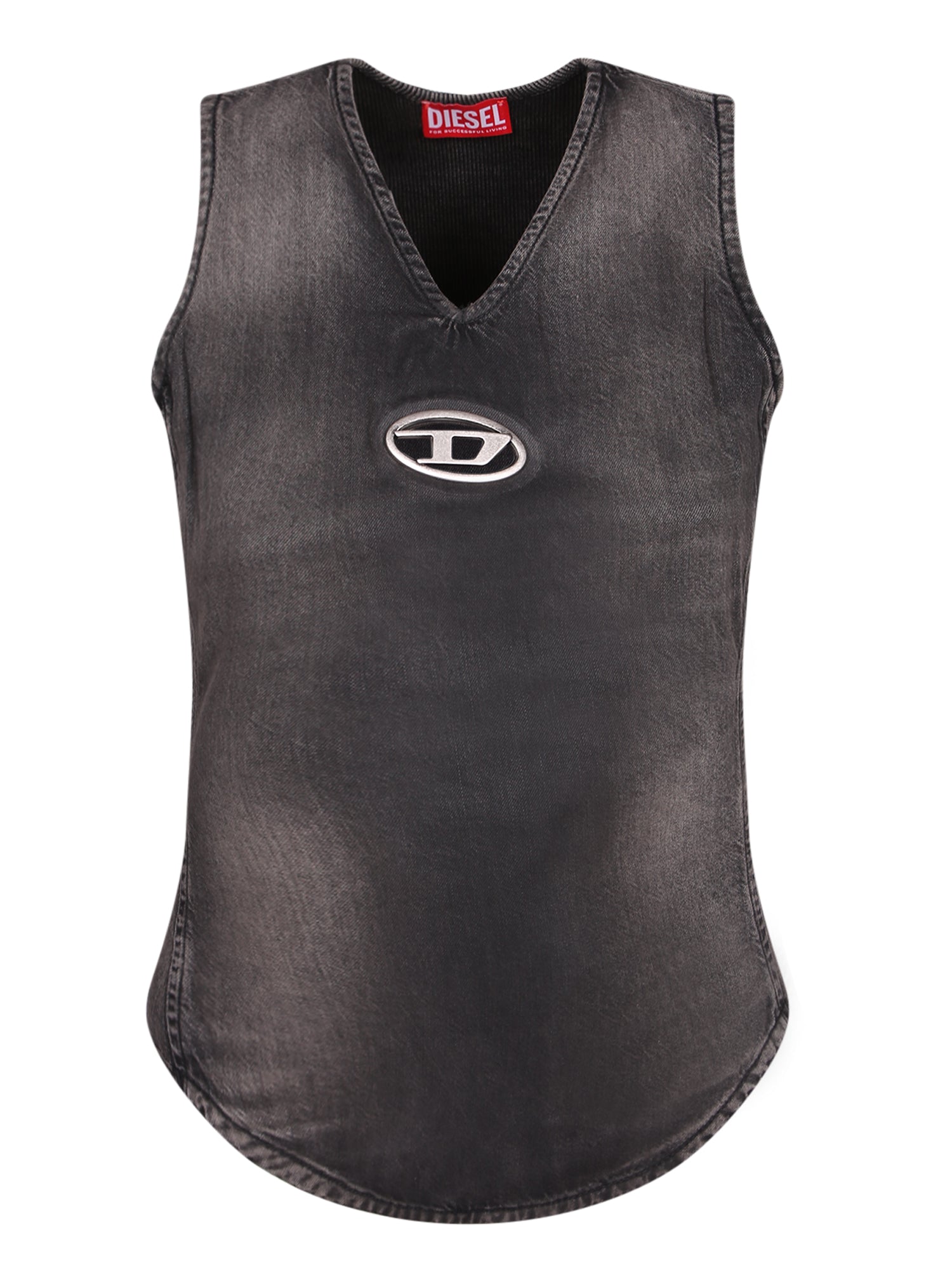 Sleeveless top. Washed denim finish. Metallic Diesel logo on the front.