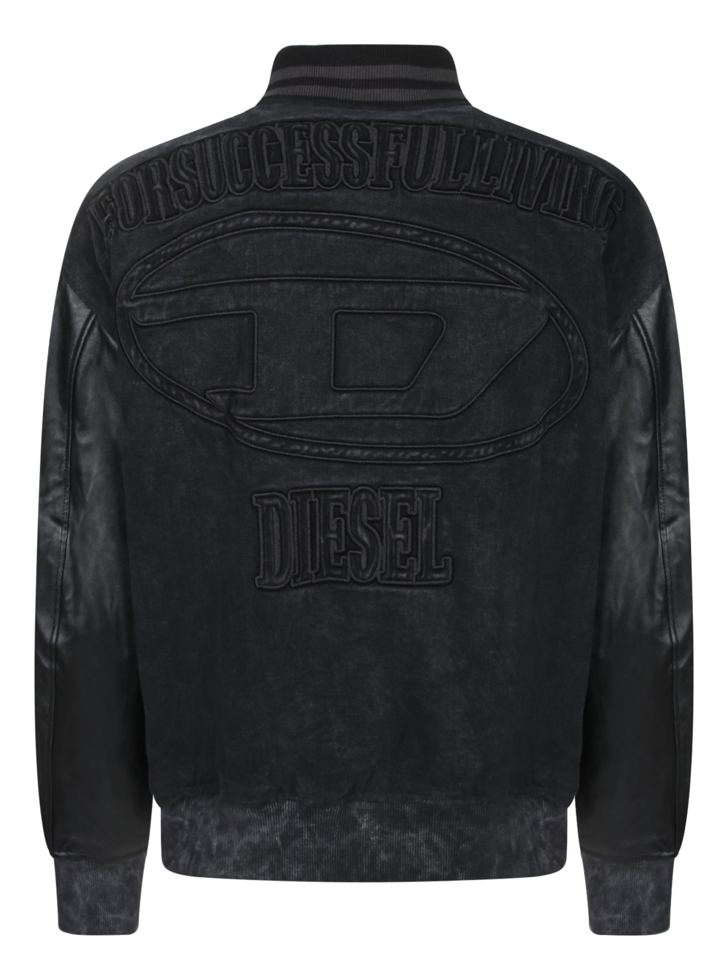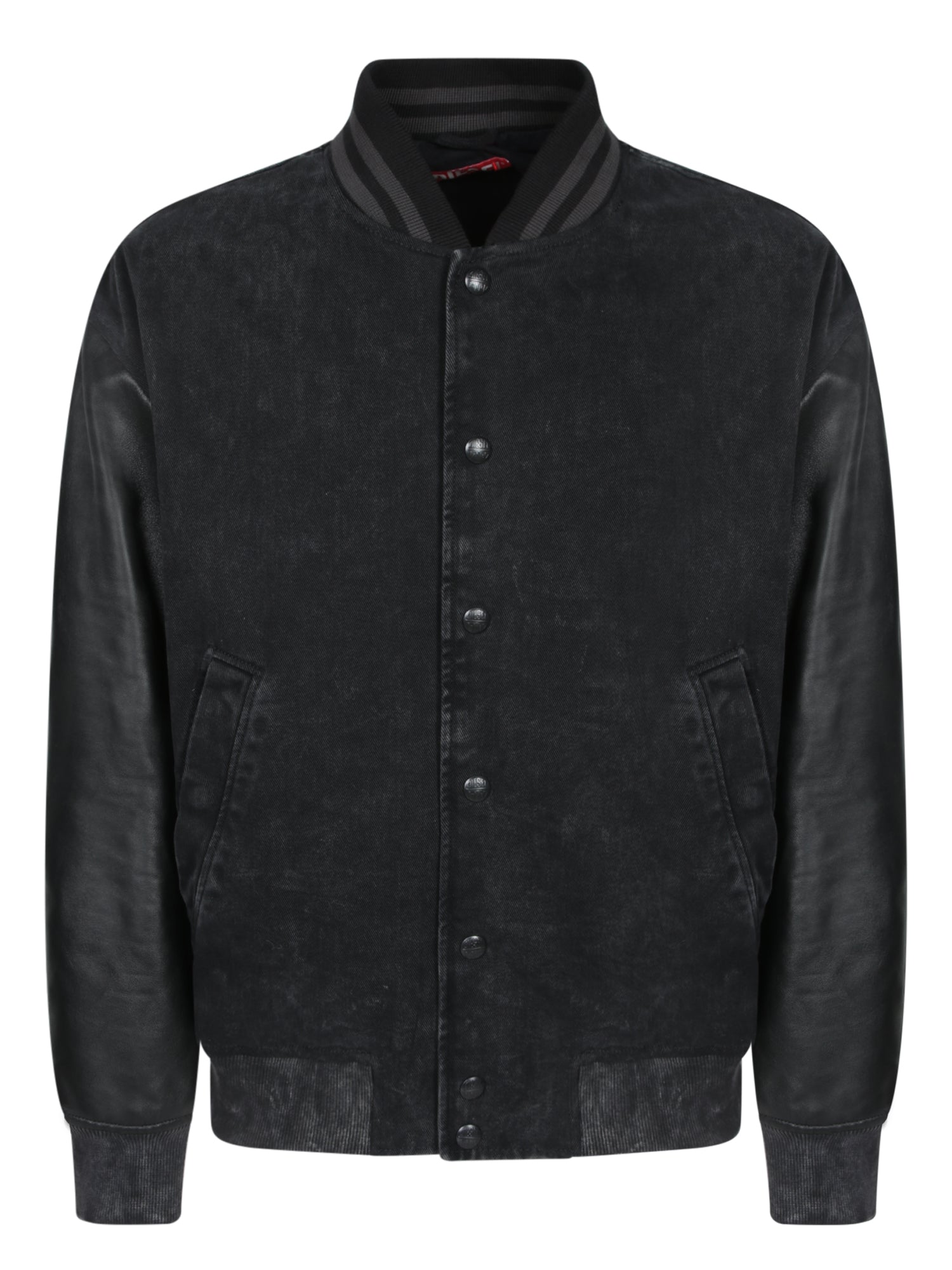 An essential piece with an urban twist by DIESEL, this black leather bomber blends practicality and style with refined tailoring details like ribbed collar, cuffs, and hem.