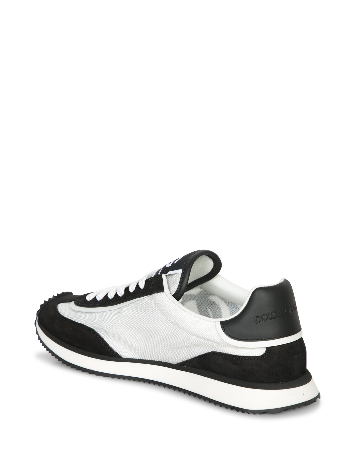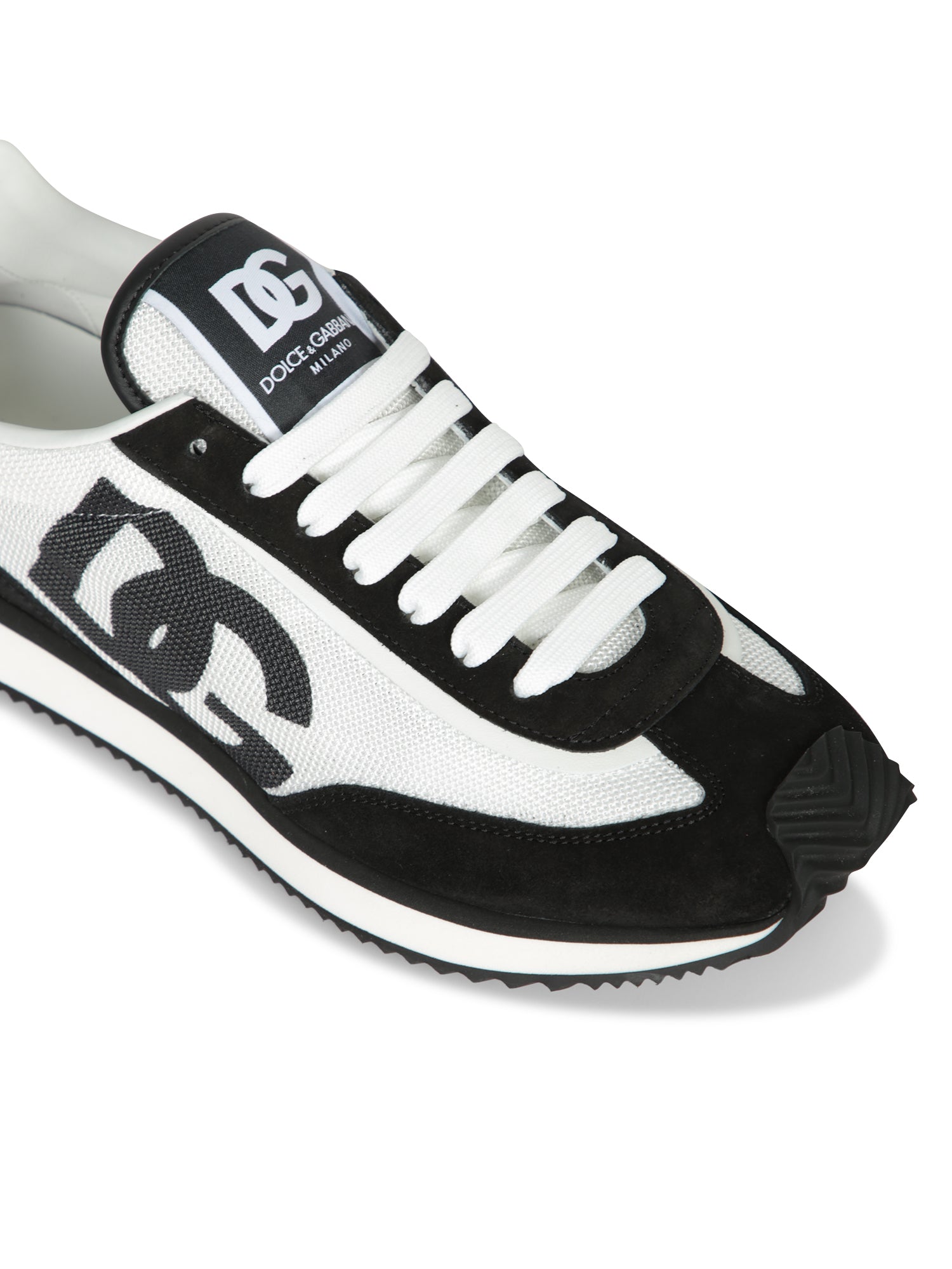 Express contemporary elegance with these Dolce & Gabbana sneakers, featuring a striking black and white leather contrast enhanced by suede details. The prominent DG logo adds a distinctive touch, while the rubber sole ensures comfort and durability.
