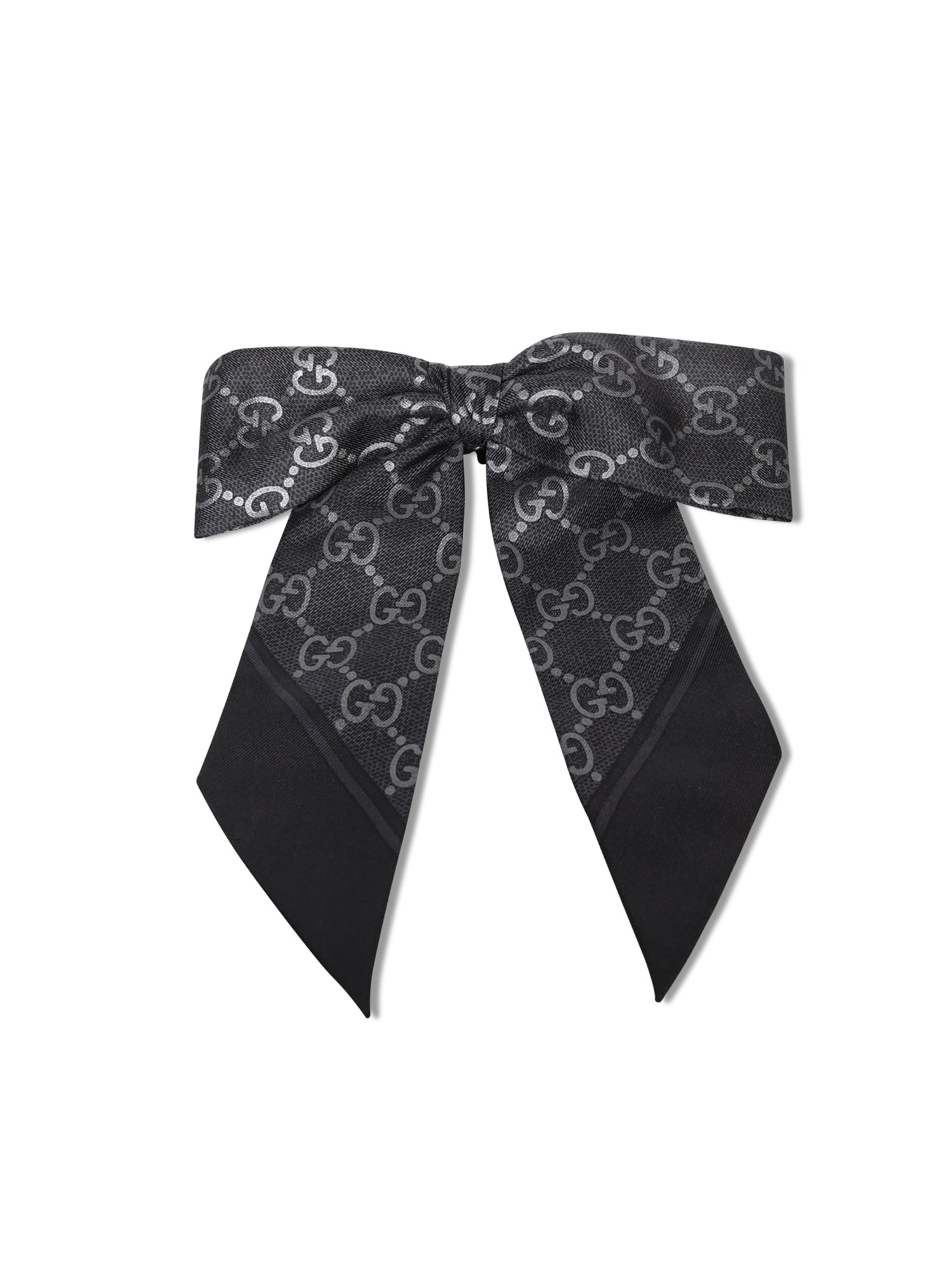 Elastic silk bow tie with GG jacquard pattern. Adjustable closure.
