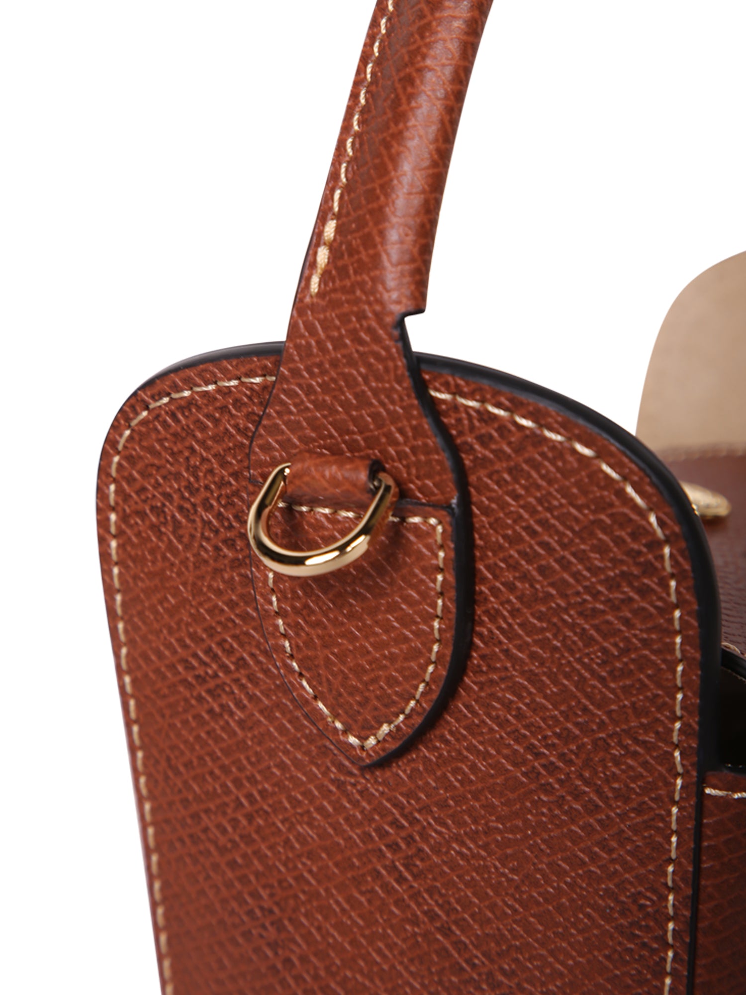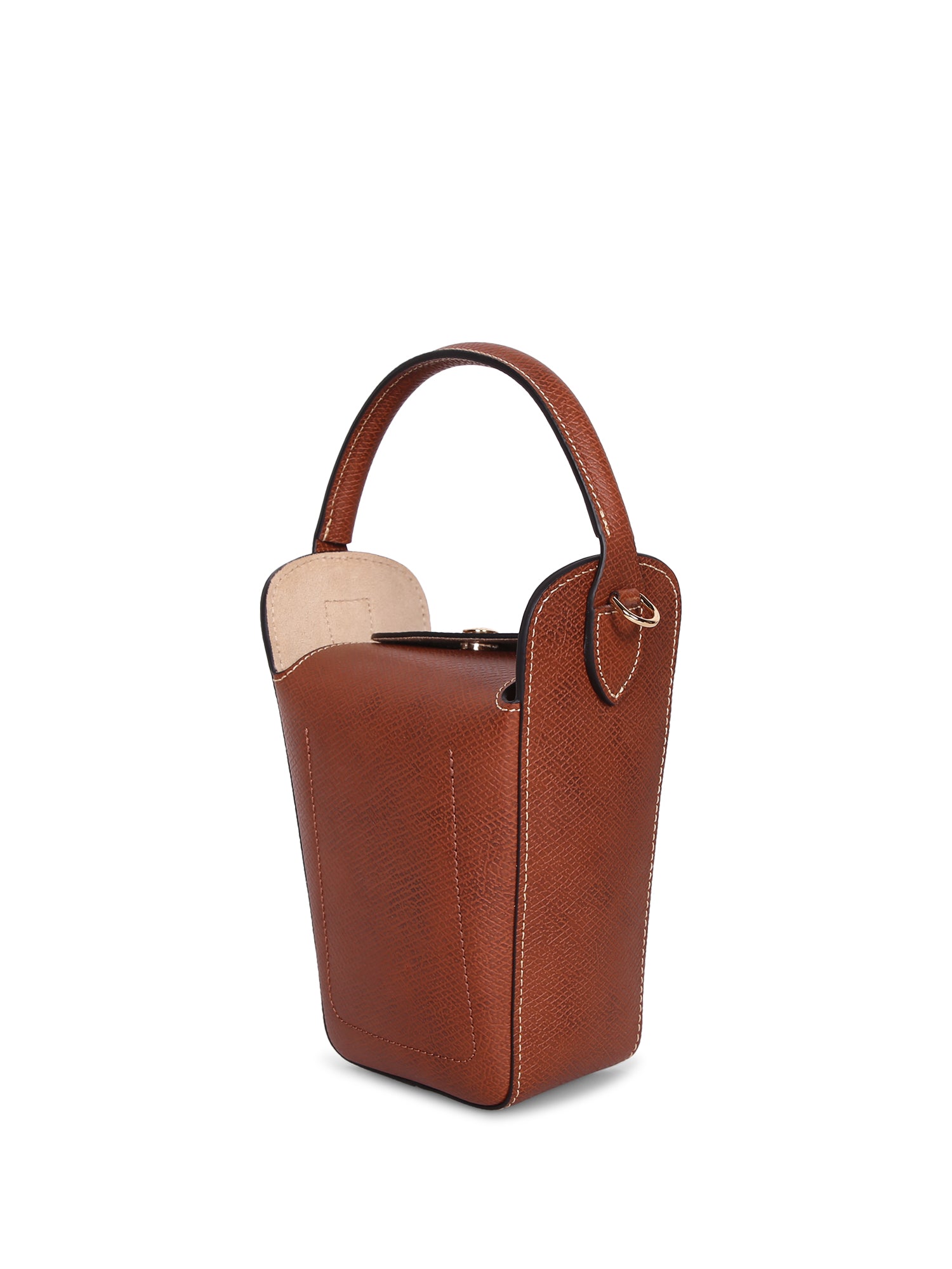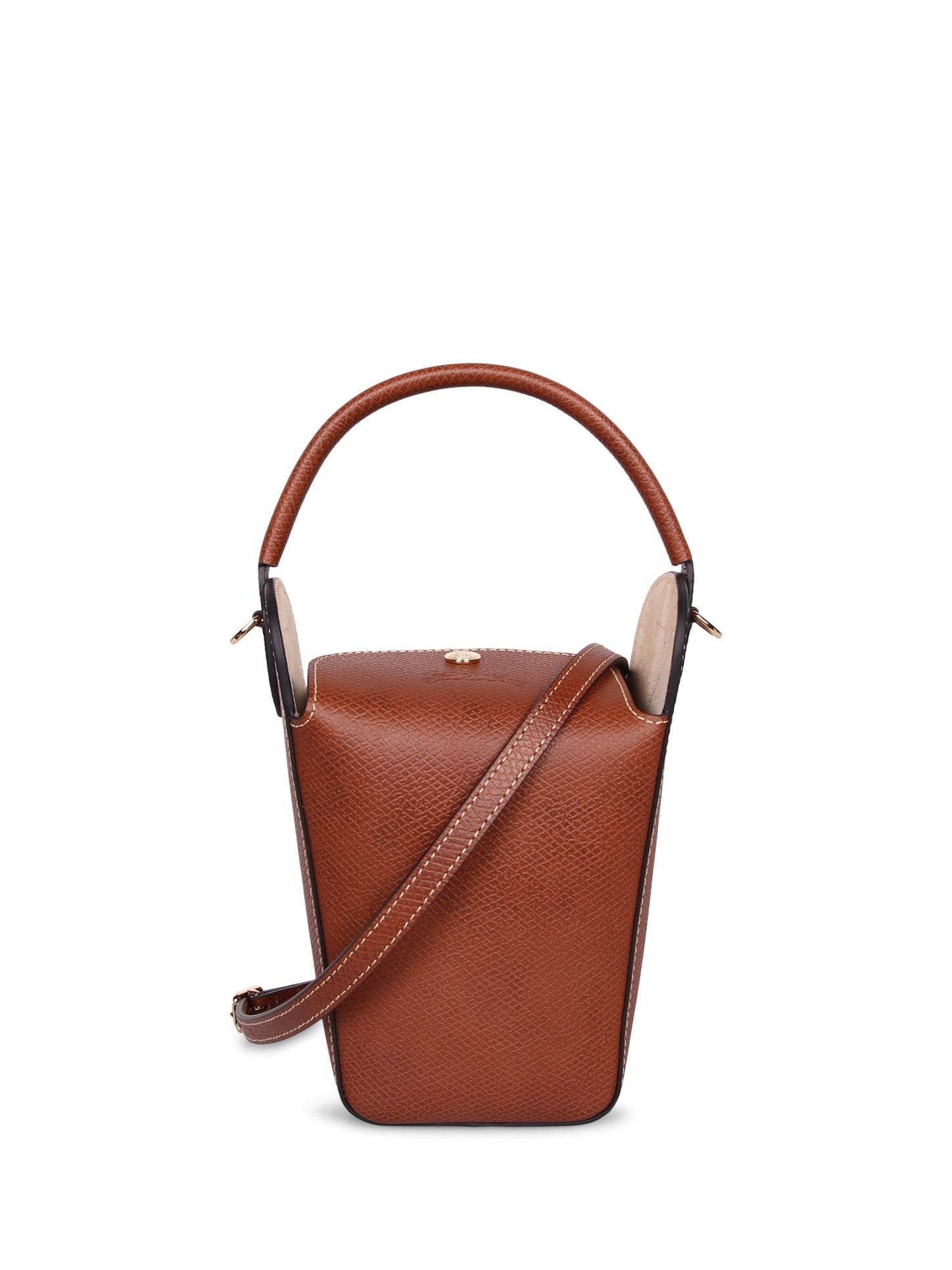 High-quality leather. Structured design. Golden button closure. Adjustable shoulder strap.