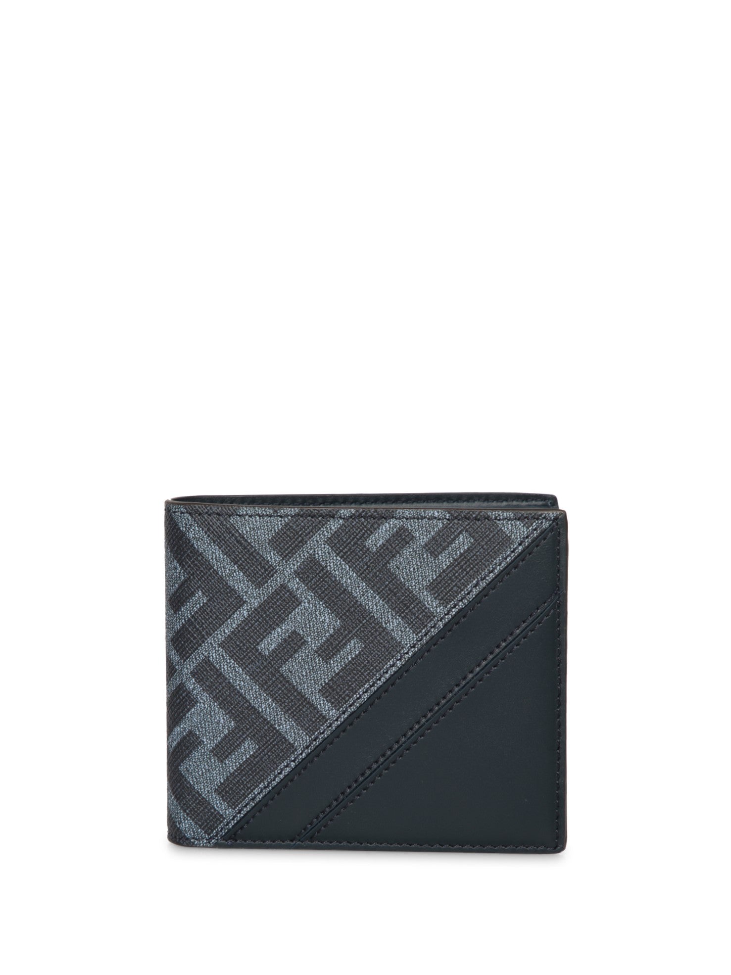 Canvas wallet featuring the iconic FF motif in shades of blue. Leather trim.